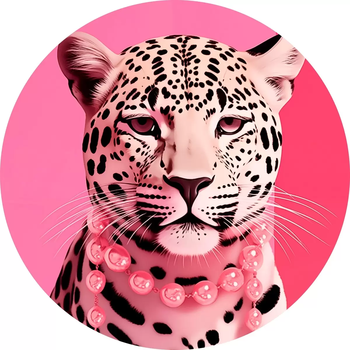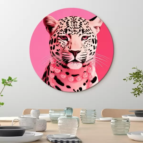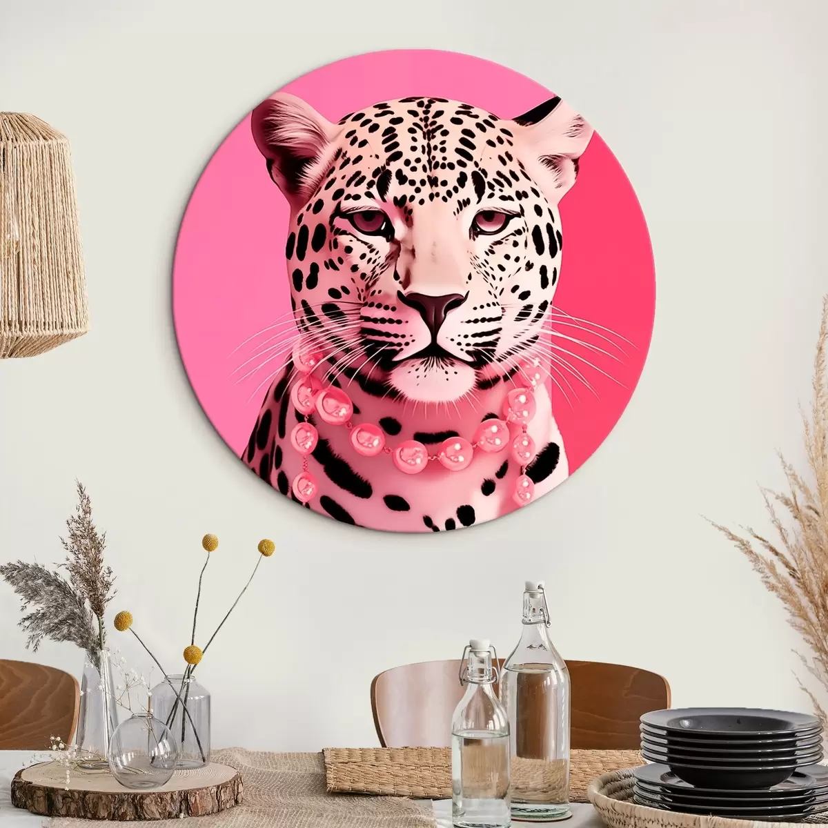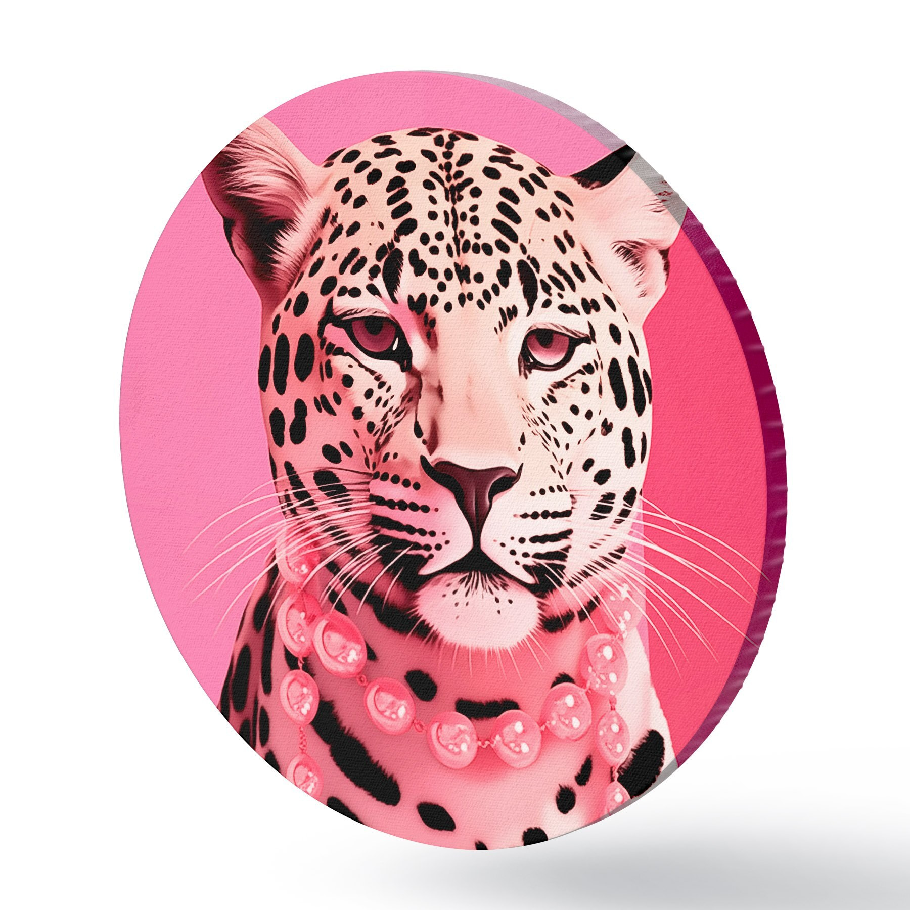 Cuadros redondos Retrato de leopardo con collar rosa r43976