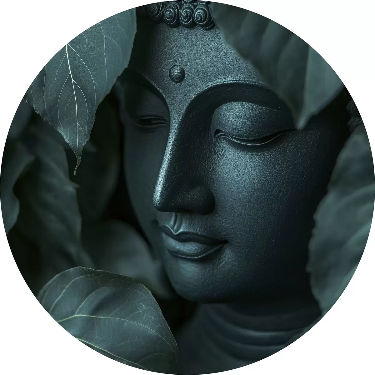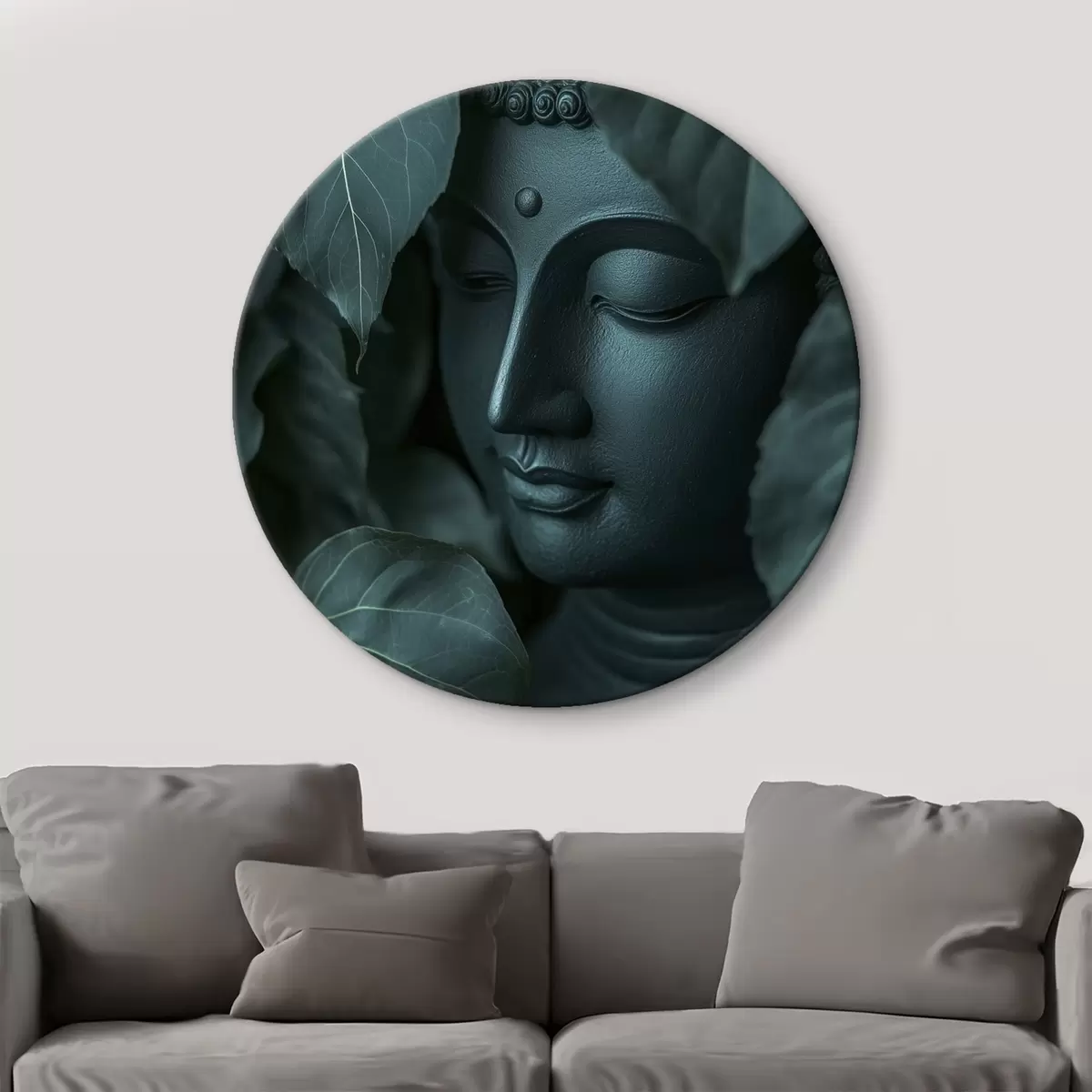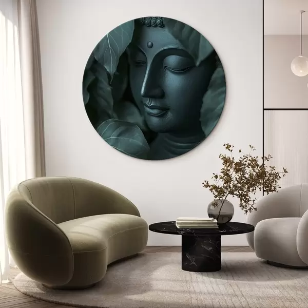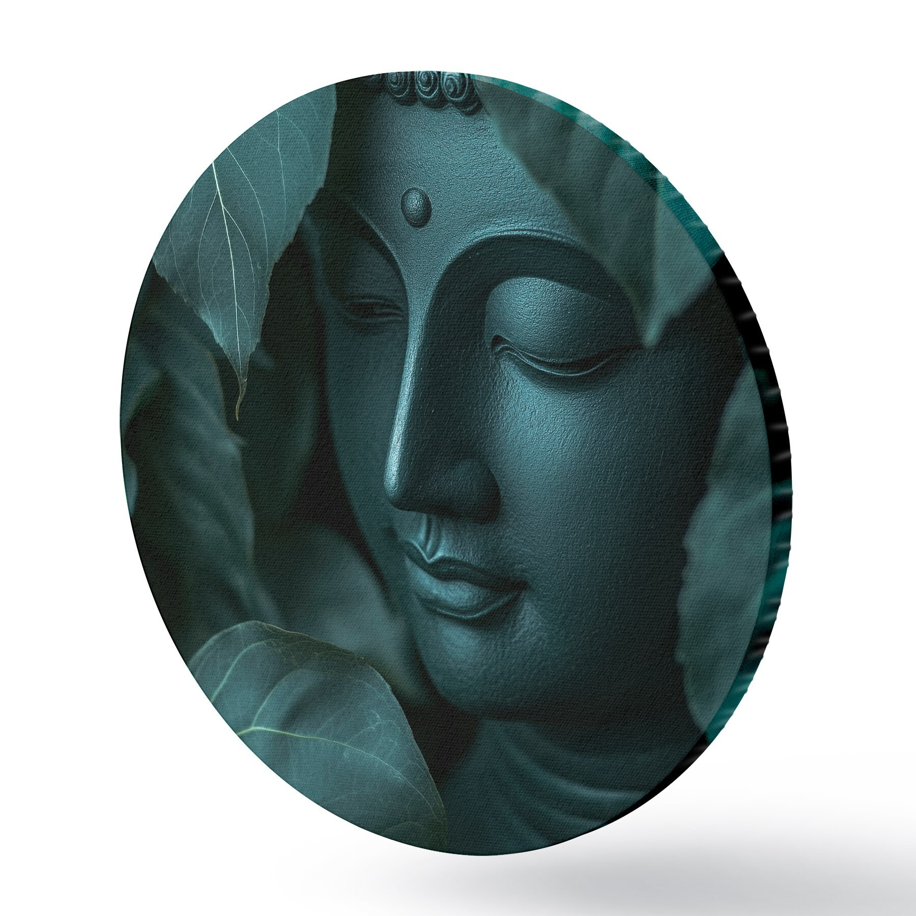 Cuadros redondos Buda en las hojas verdes, Budismo, tropical, realismo r44004