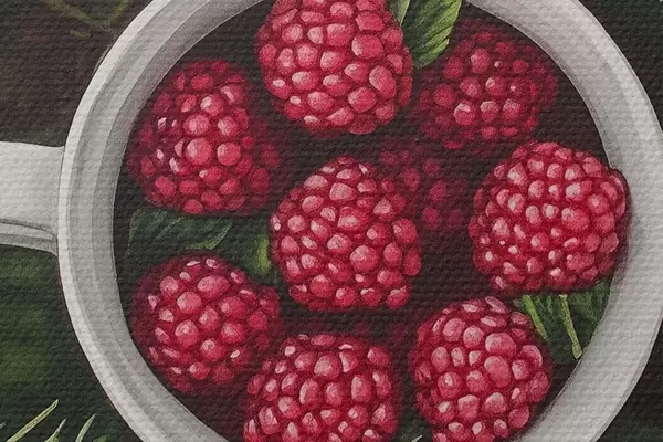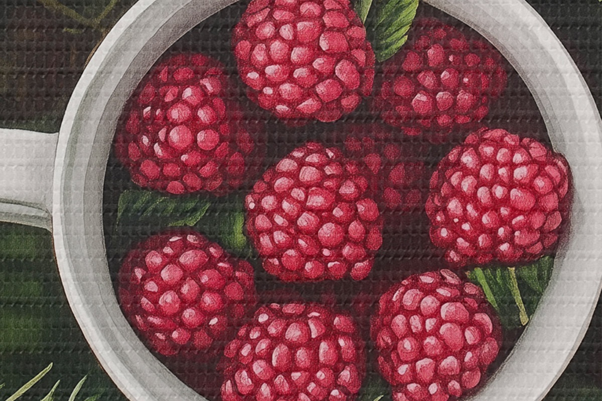 Foto Taza de frambuesas en el bosque verde, naturaleza, estilo acuarela Nr r44021