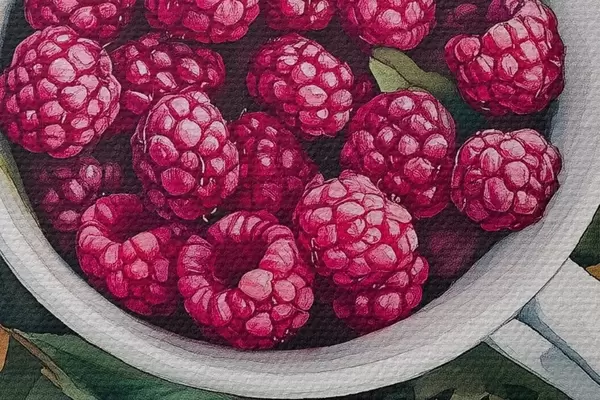 Foto Frambuesas jugosas en el bosque, rústico, hojas, estilo acuarela Nr r44023