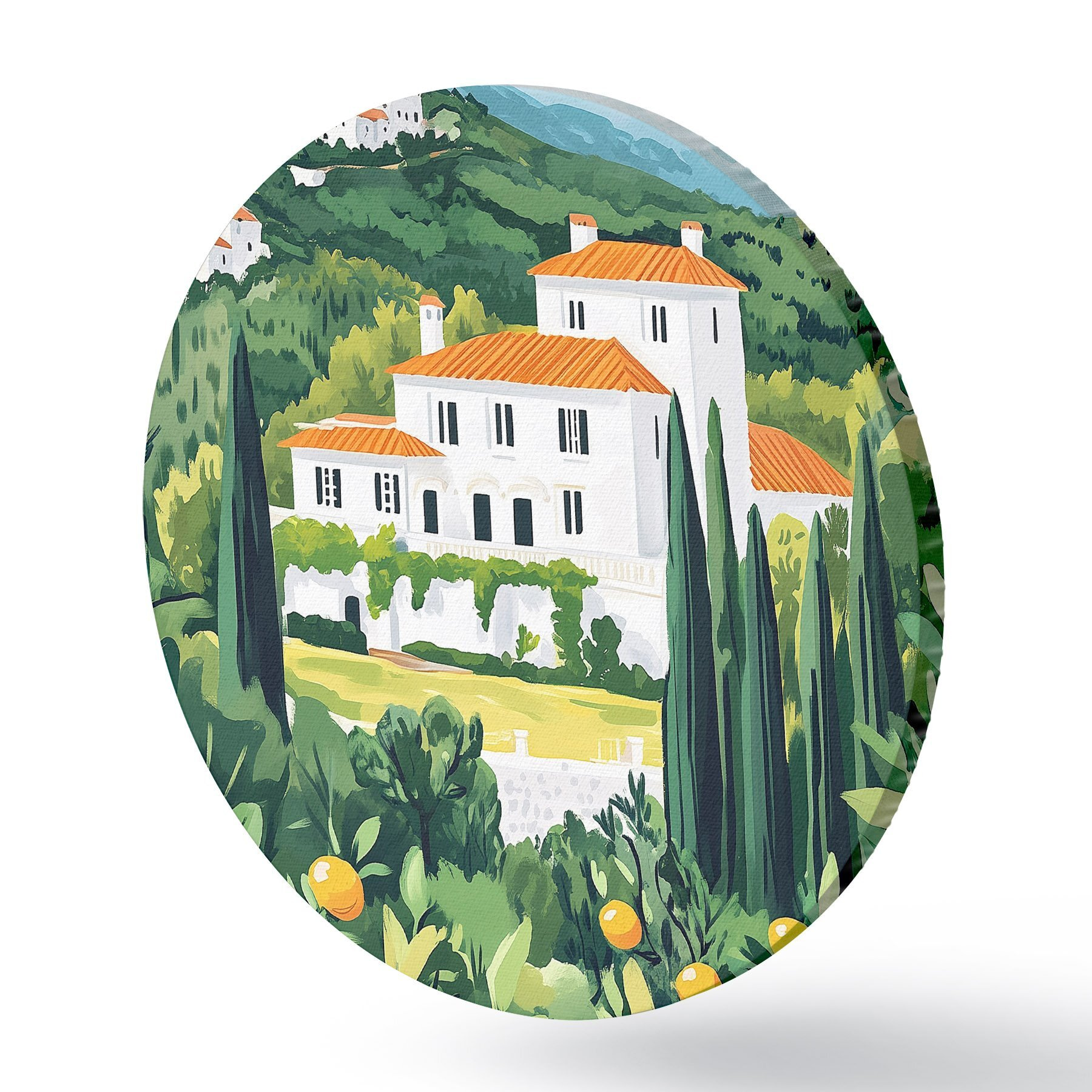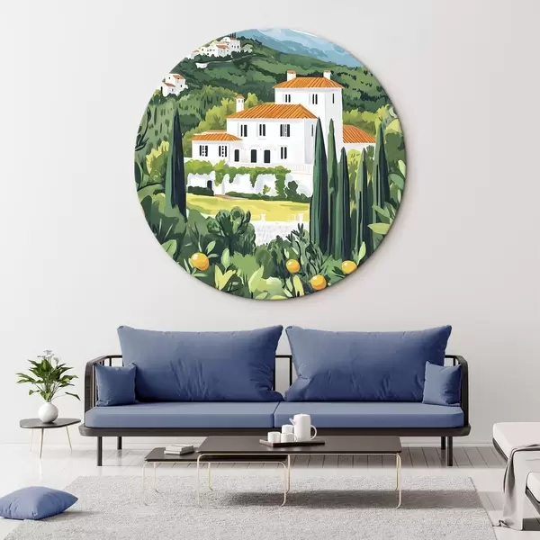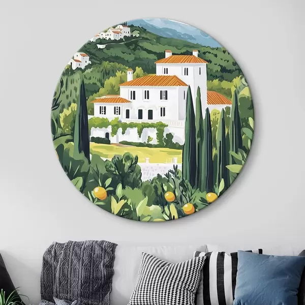 Cuadros redondos Naturaleza estival, mediterráneo, limoneros, arquitectura r44028
