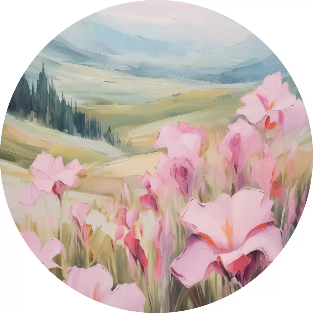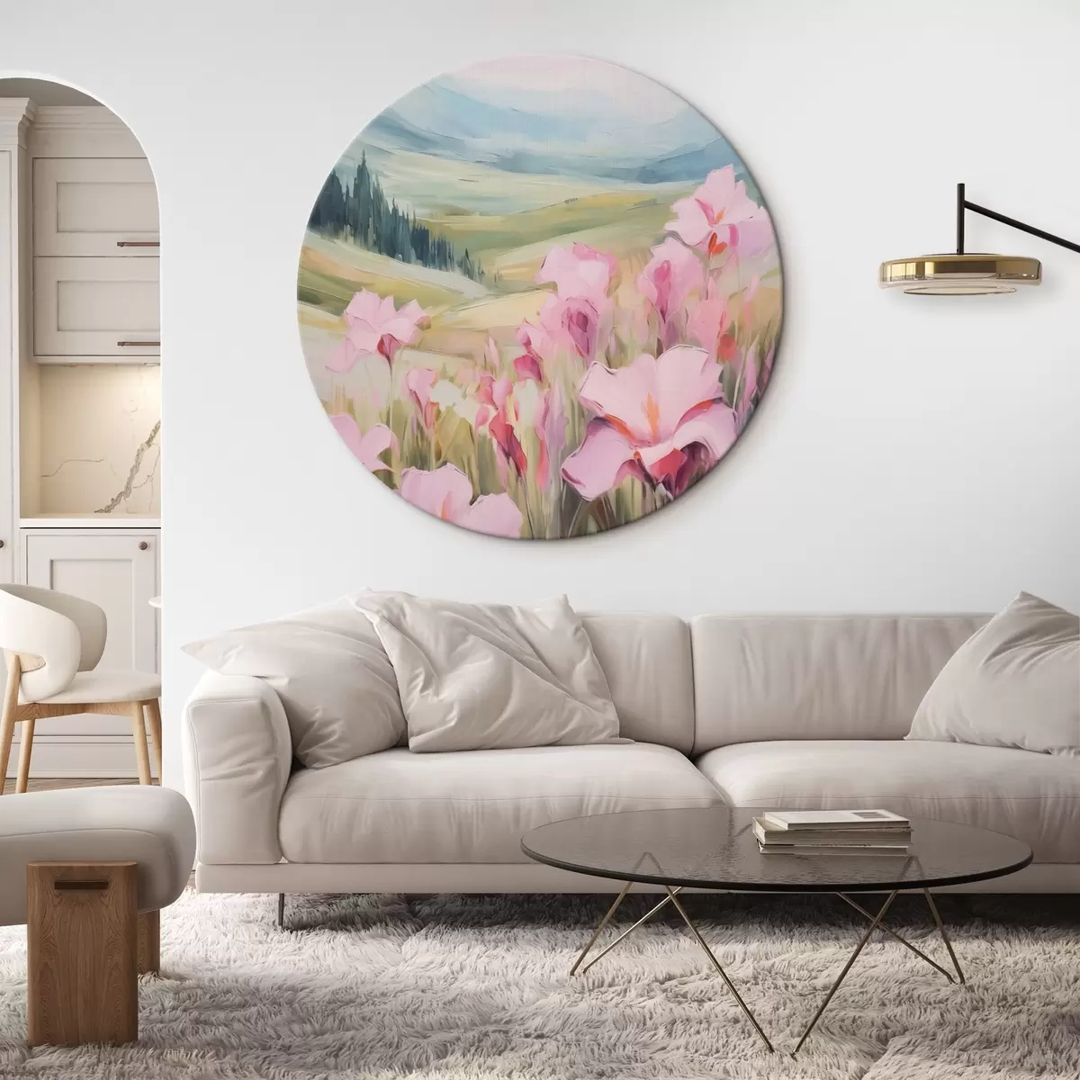 Cuadros redondos Iris con las montañas como telón de fondo r44039