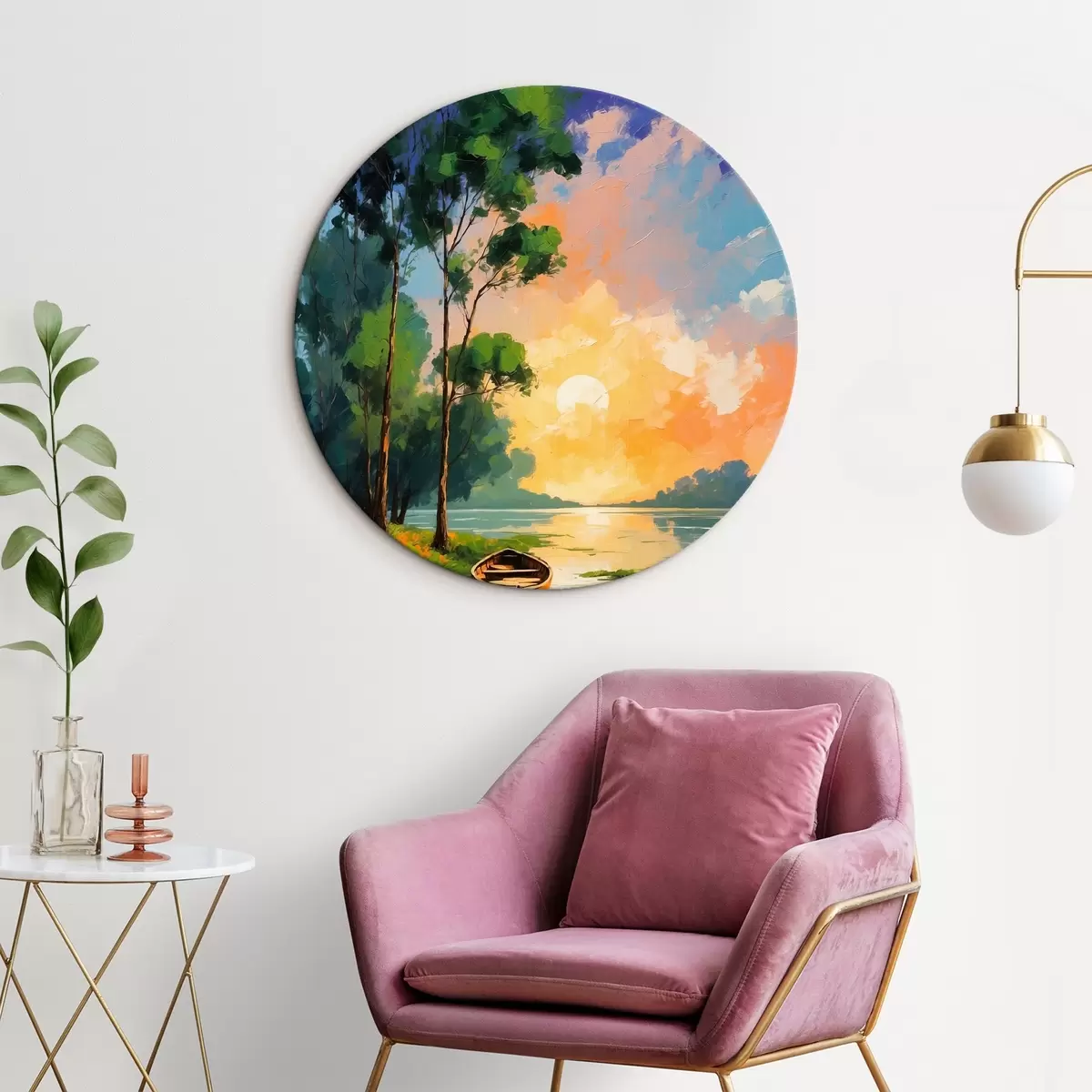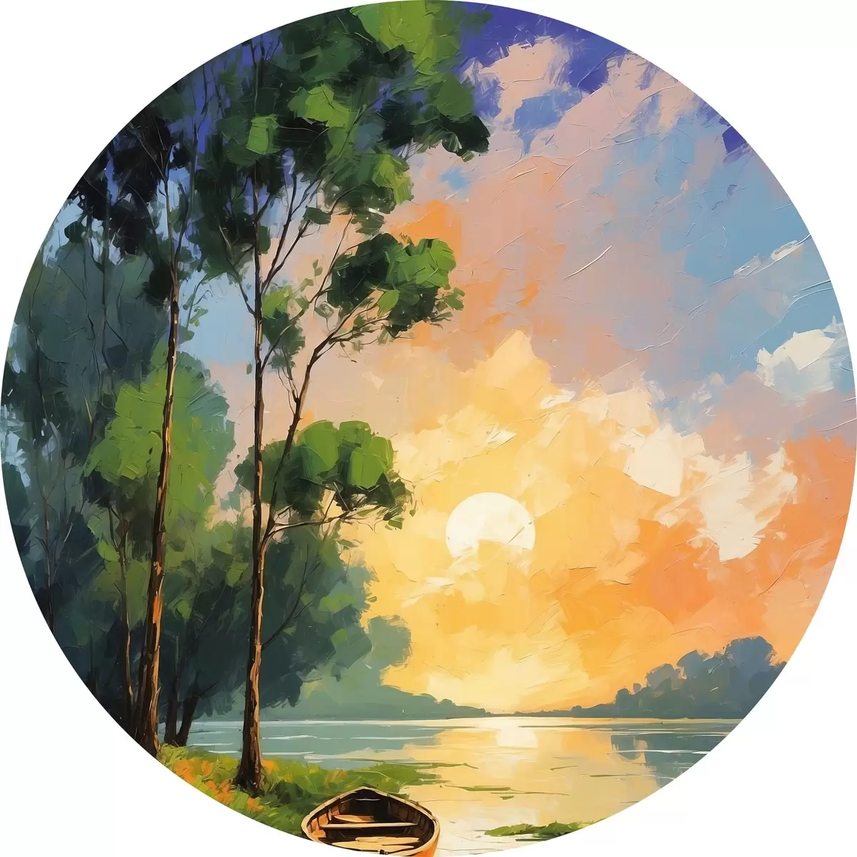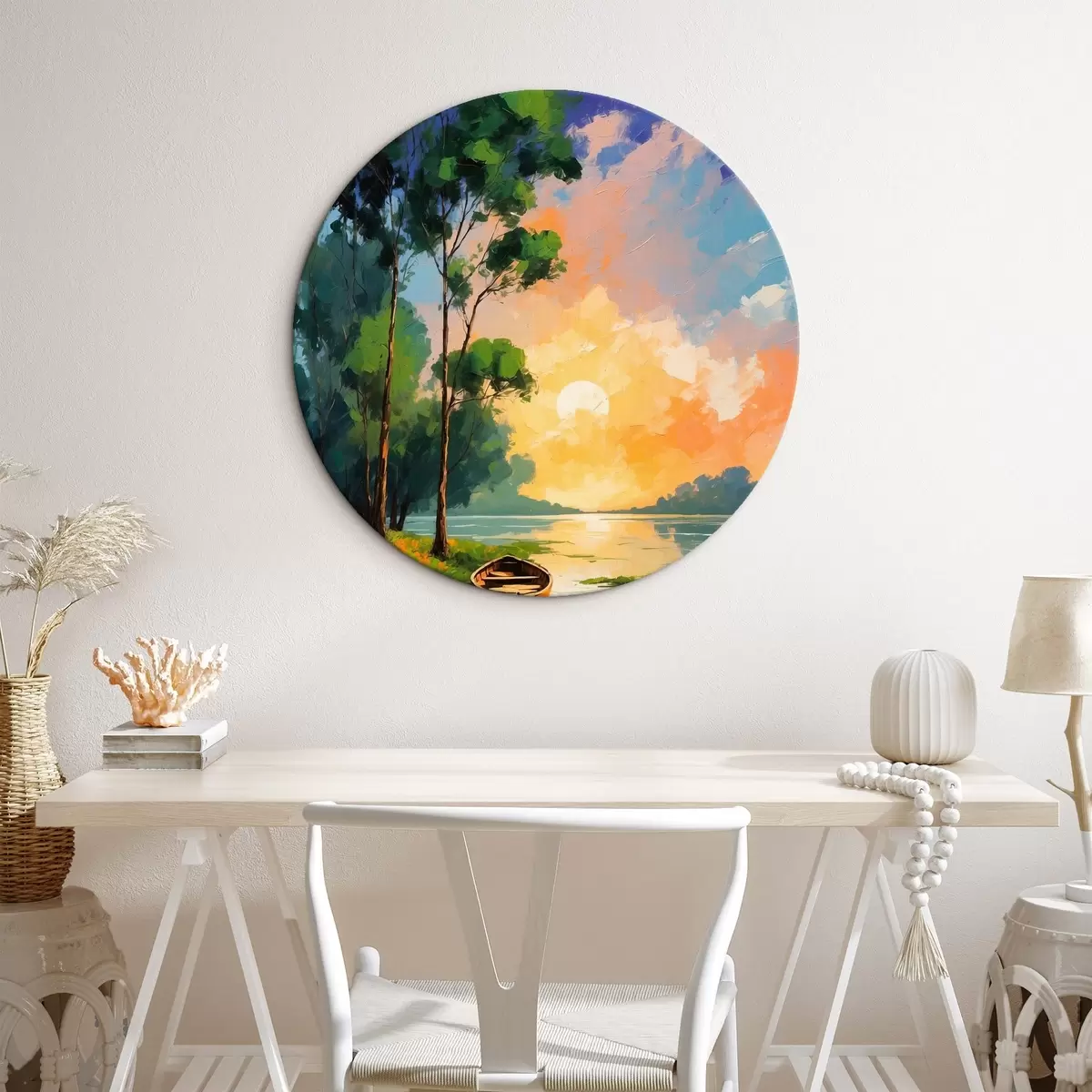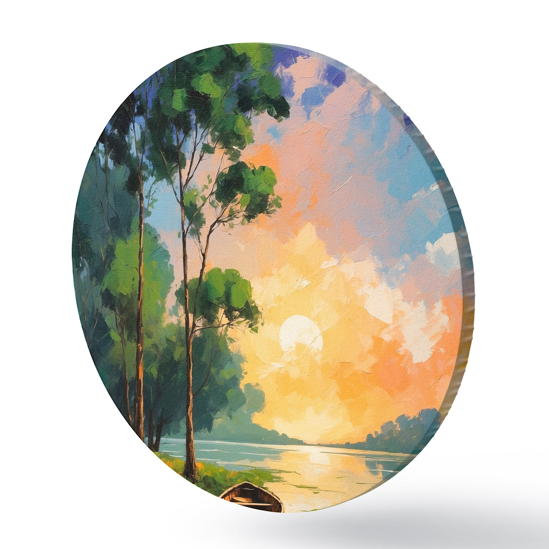 Cuadros redondos Barco cerca de una isla en estilo de pintura acrílica r44065