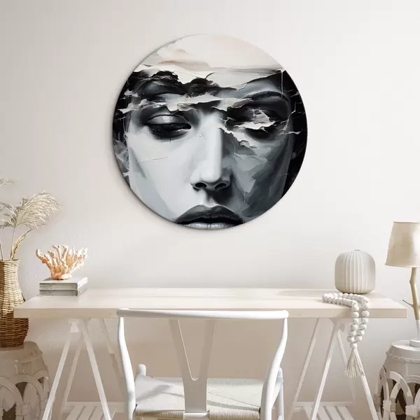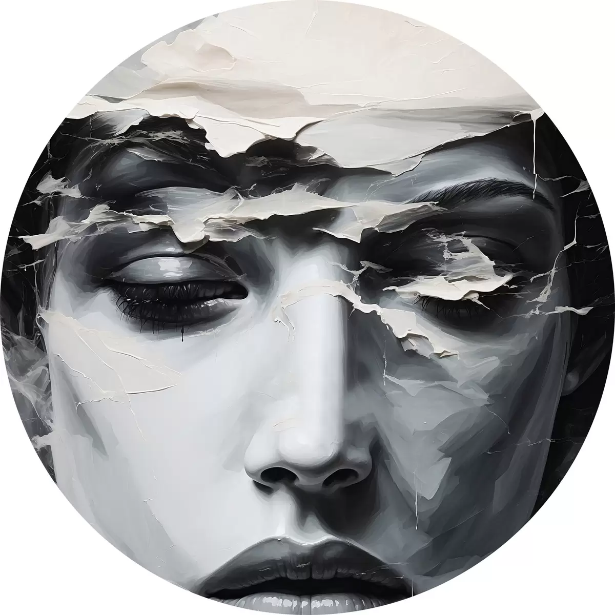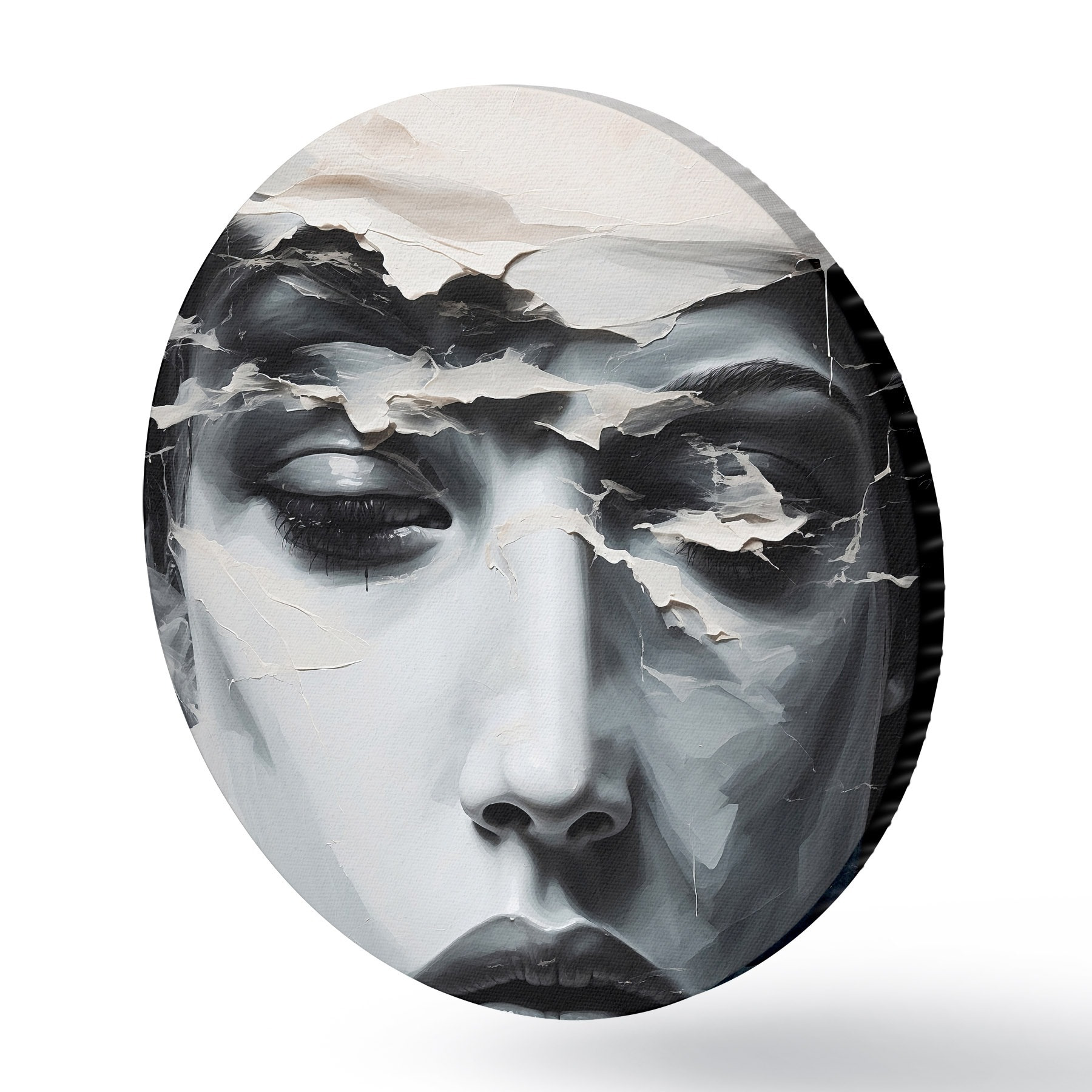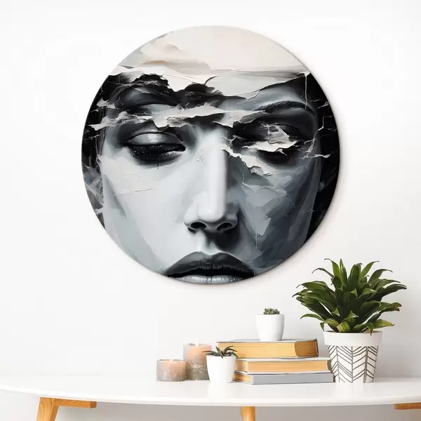 Cuadros redondos Rostro femenino abstracto en estilo de pintura acrílica r44070
