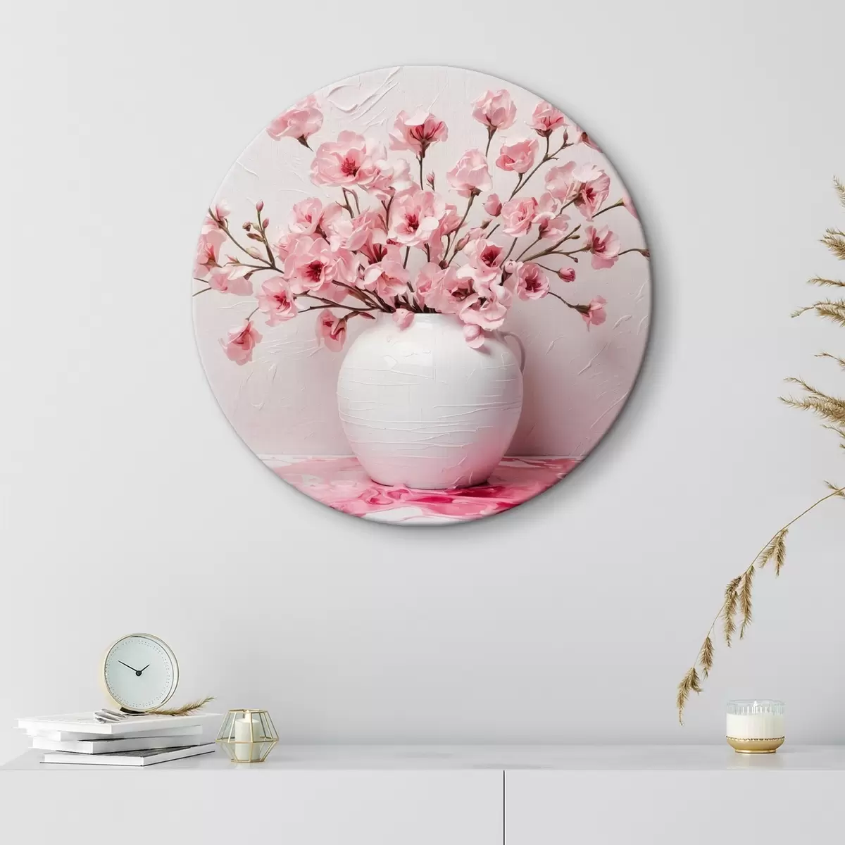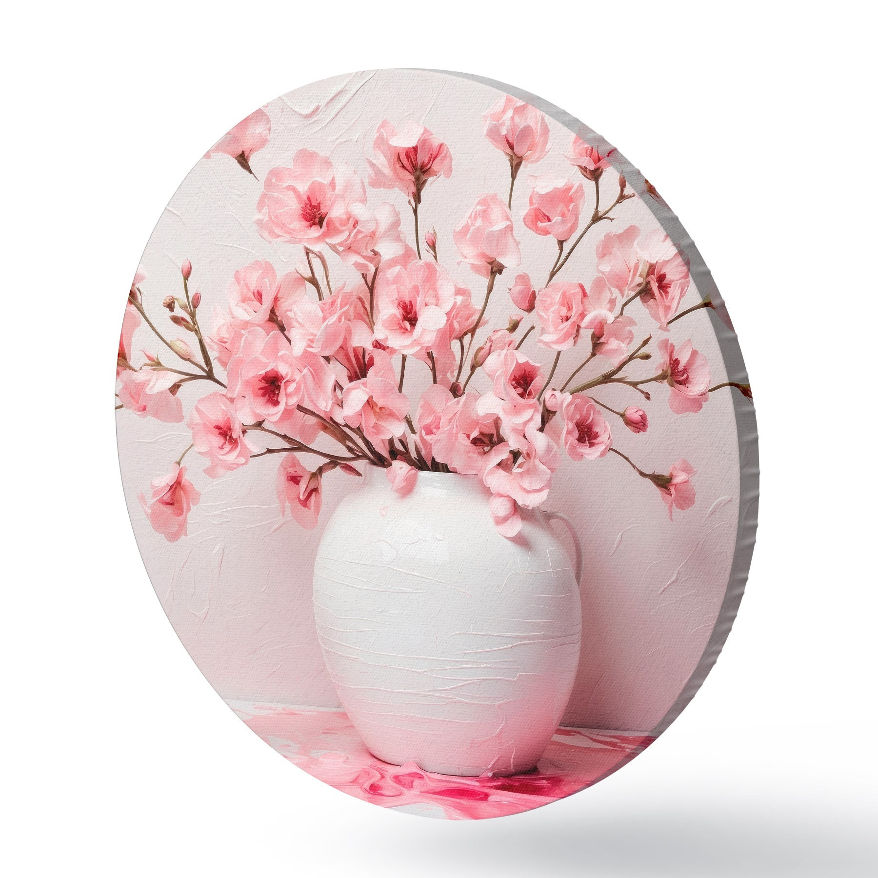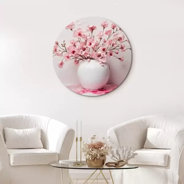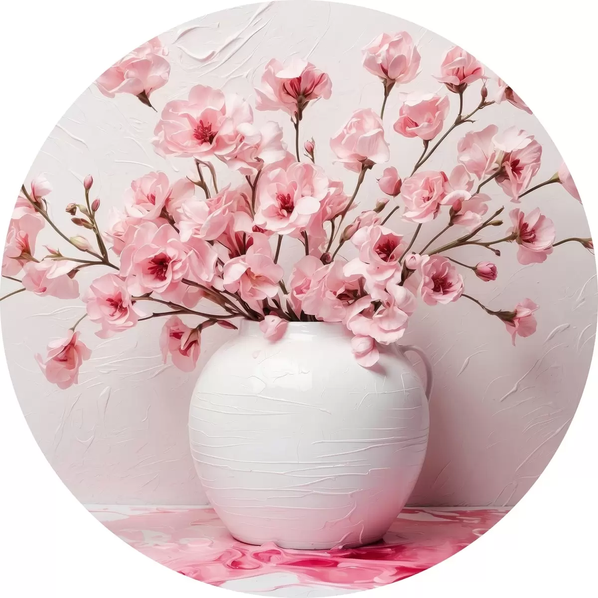 Cuadros redondos Flores rosas en gran jarrón blanco r44081