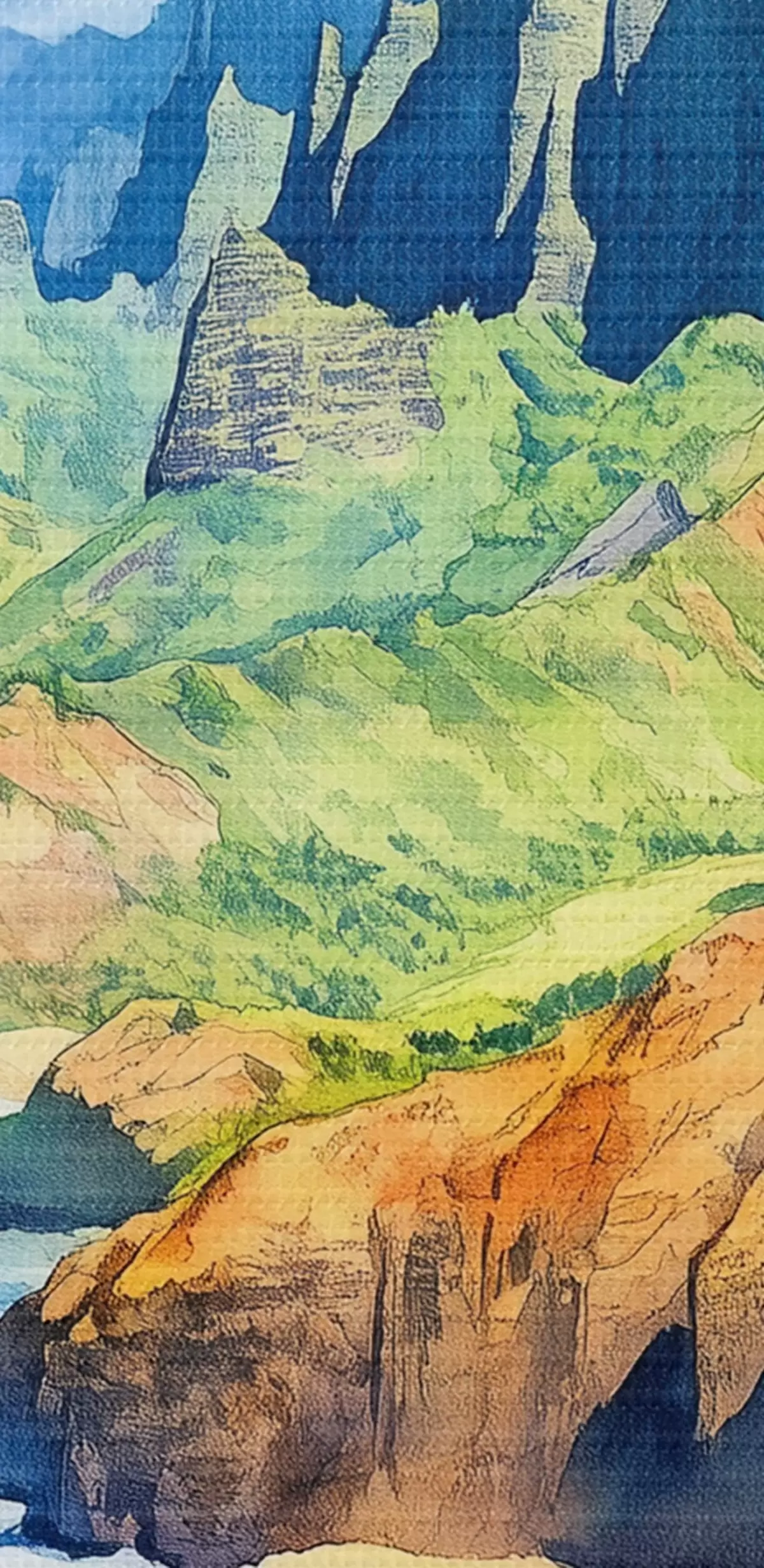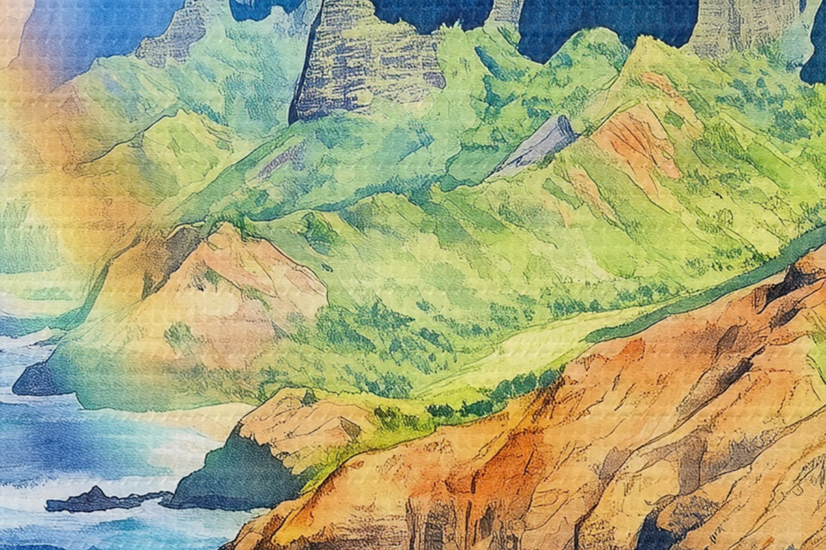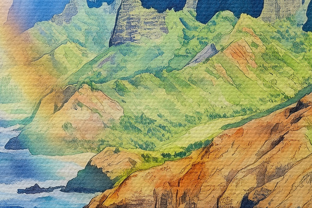 Foto Isla de Hawai, estilo acuarela, arco iris, montañas verdes, océano Nr r44141