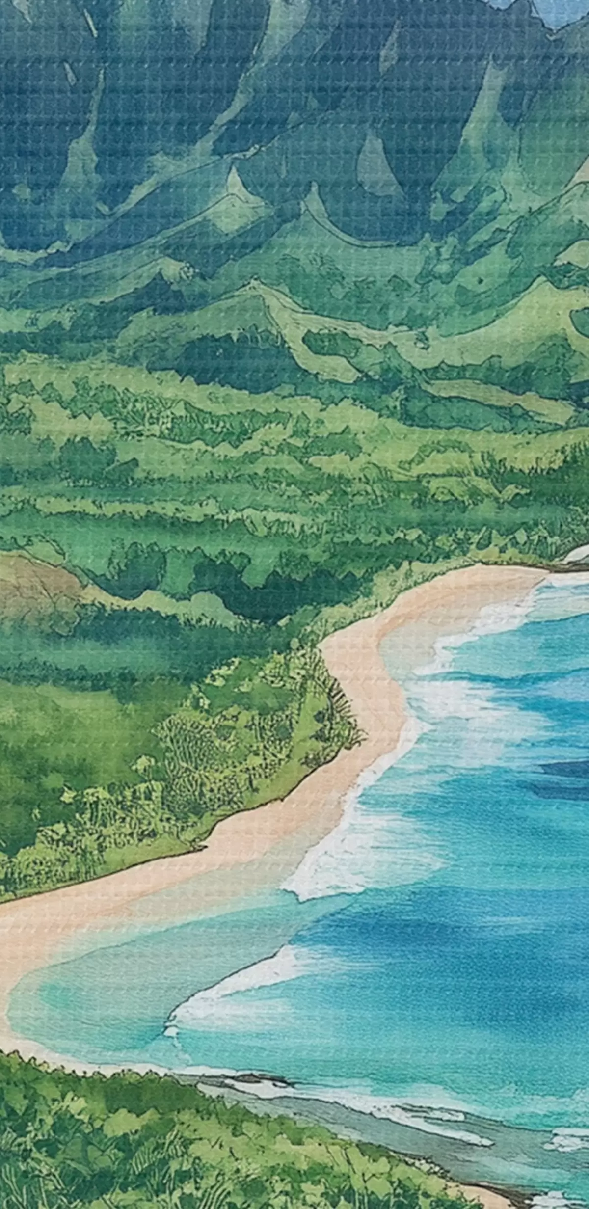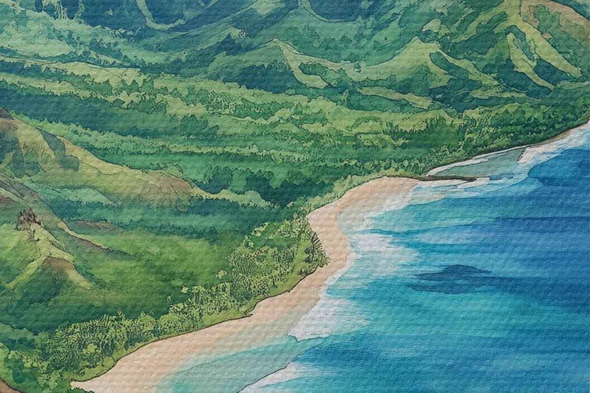 Foto Montañas verdes, Hawai, océano, tropical, estilo acuarela Nr r44143