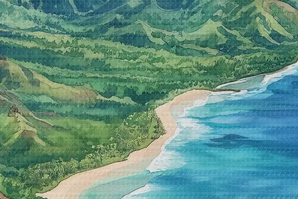 Foto Montañas verdes, Hawai, océano, tropical, estilo acuarela Nr r44143