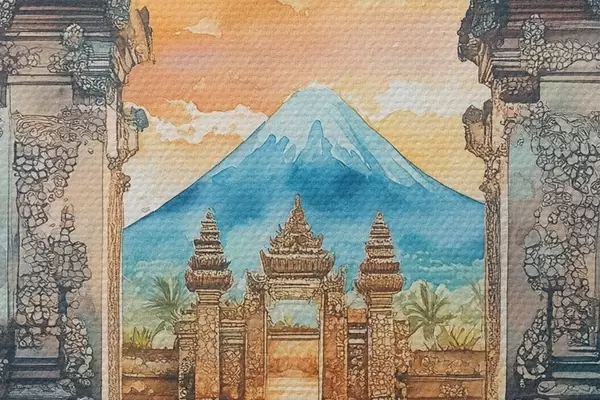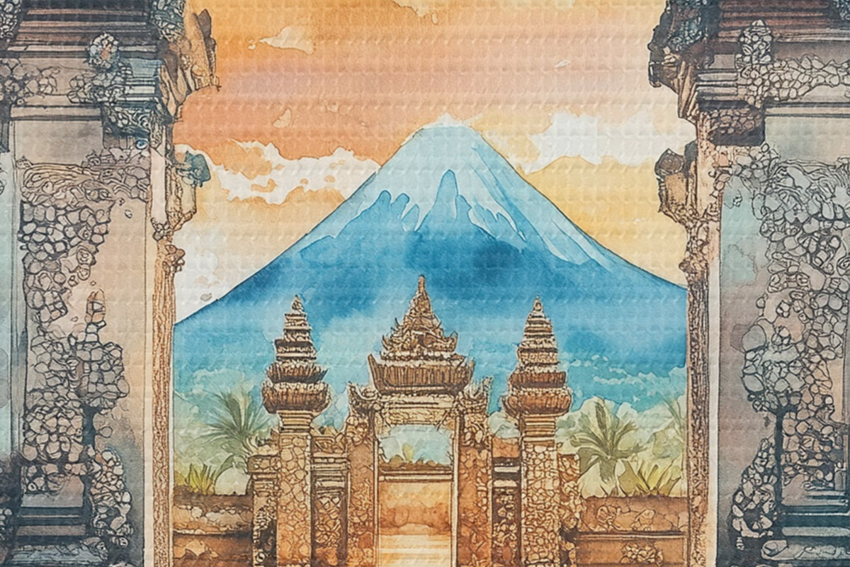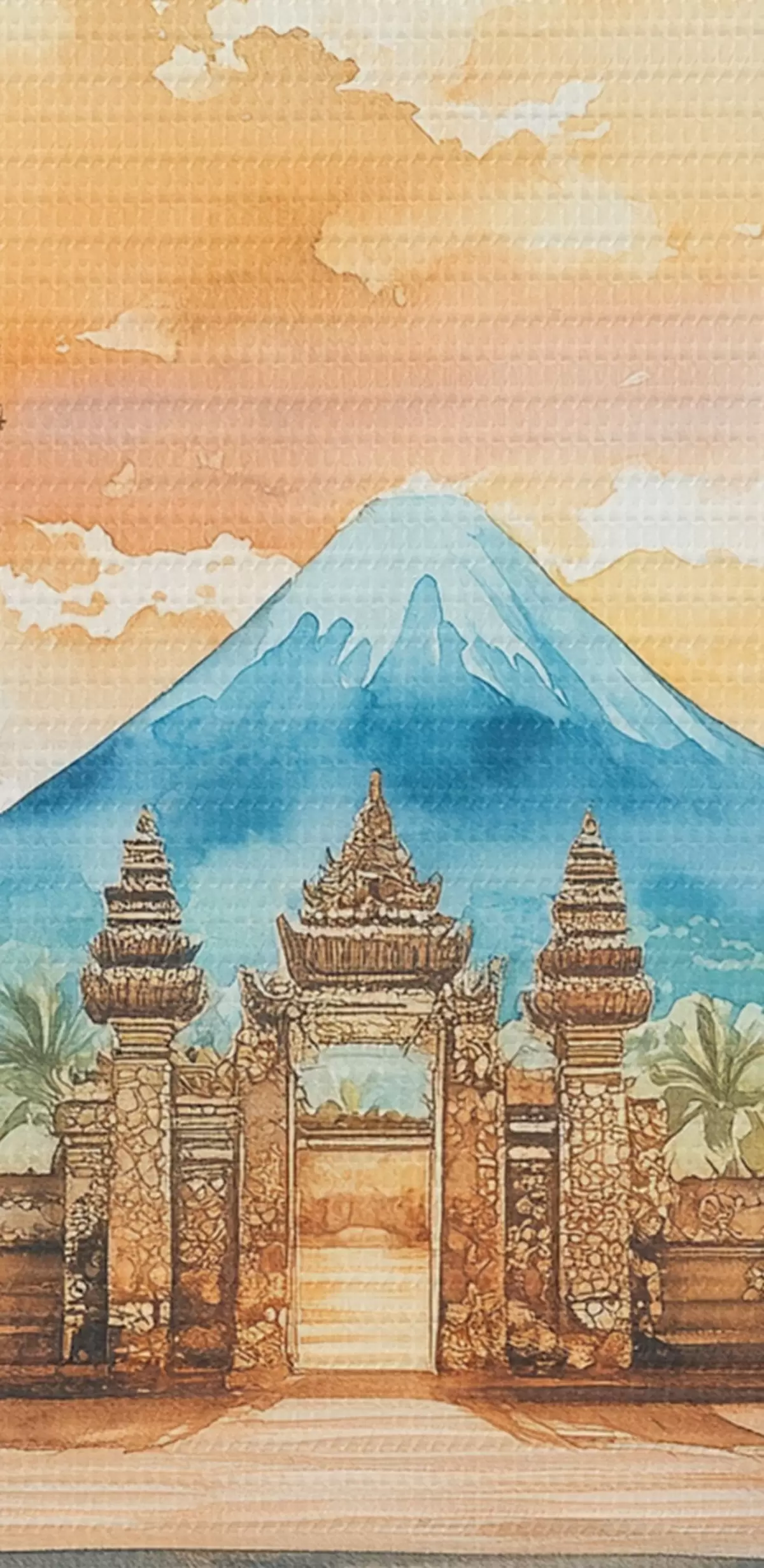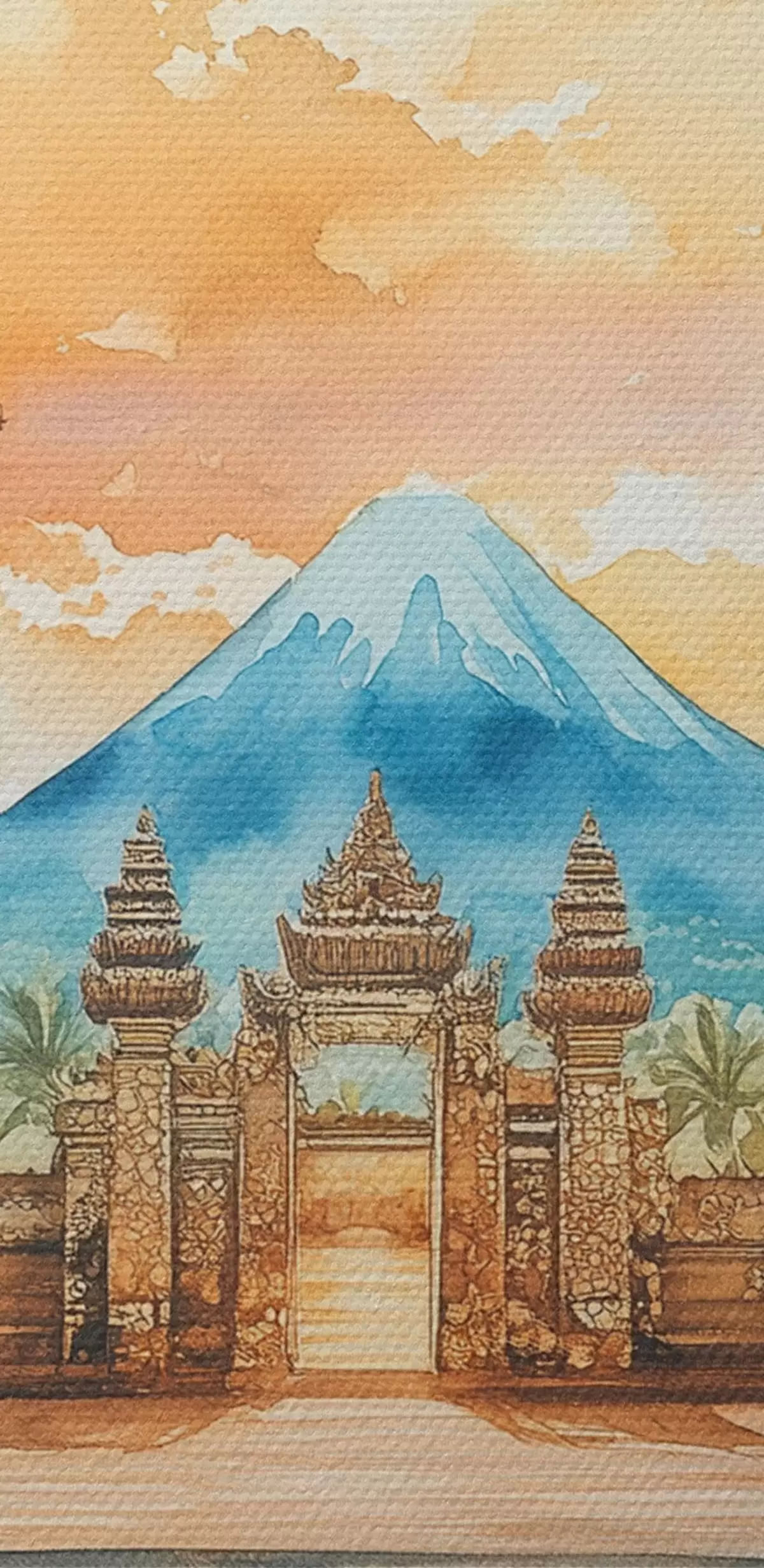 Foto Estética de Bali, templo, cielo al atardecer, naturaleza tropical, estilo acuarela Nr r44149