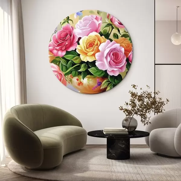 Cuadros redondos Exuberante ramo de flores brillantes r44217