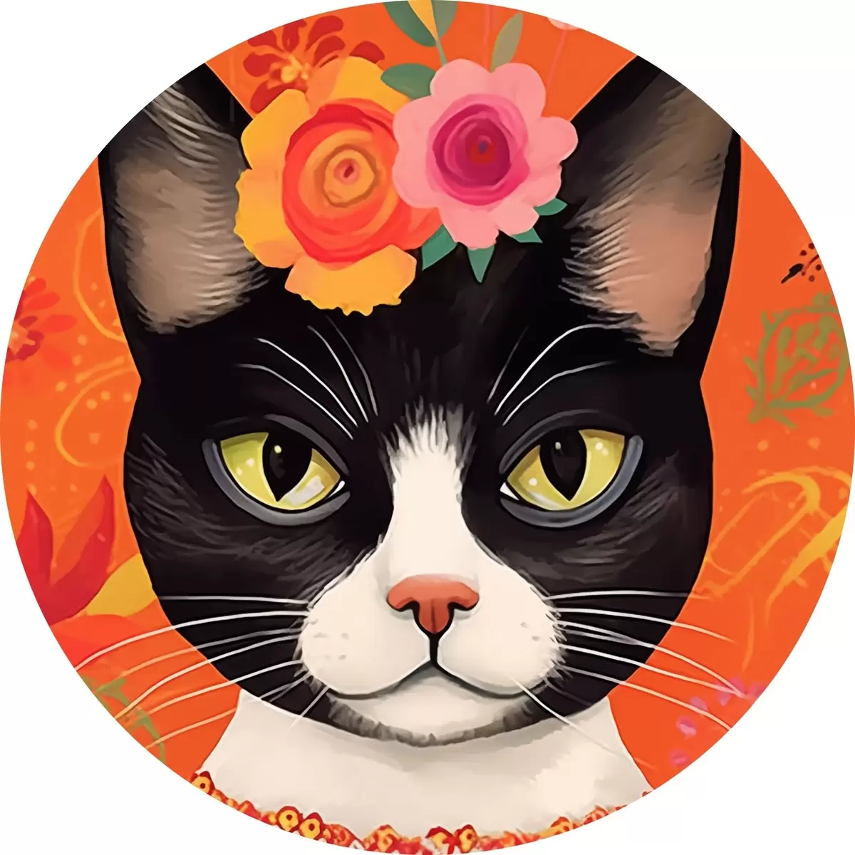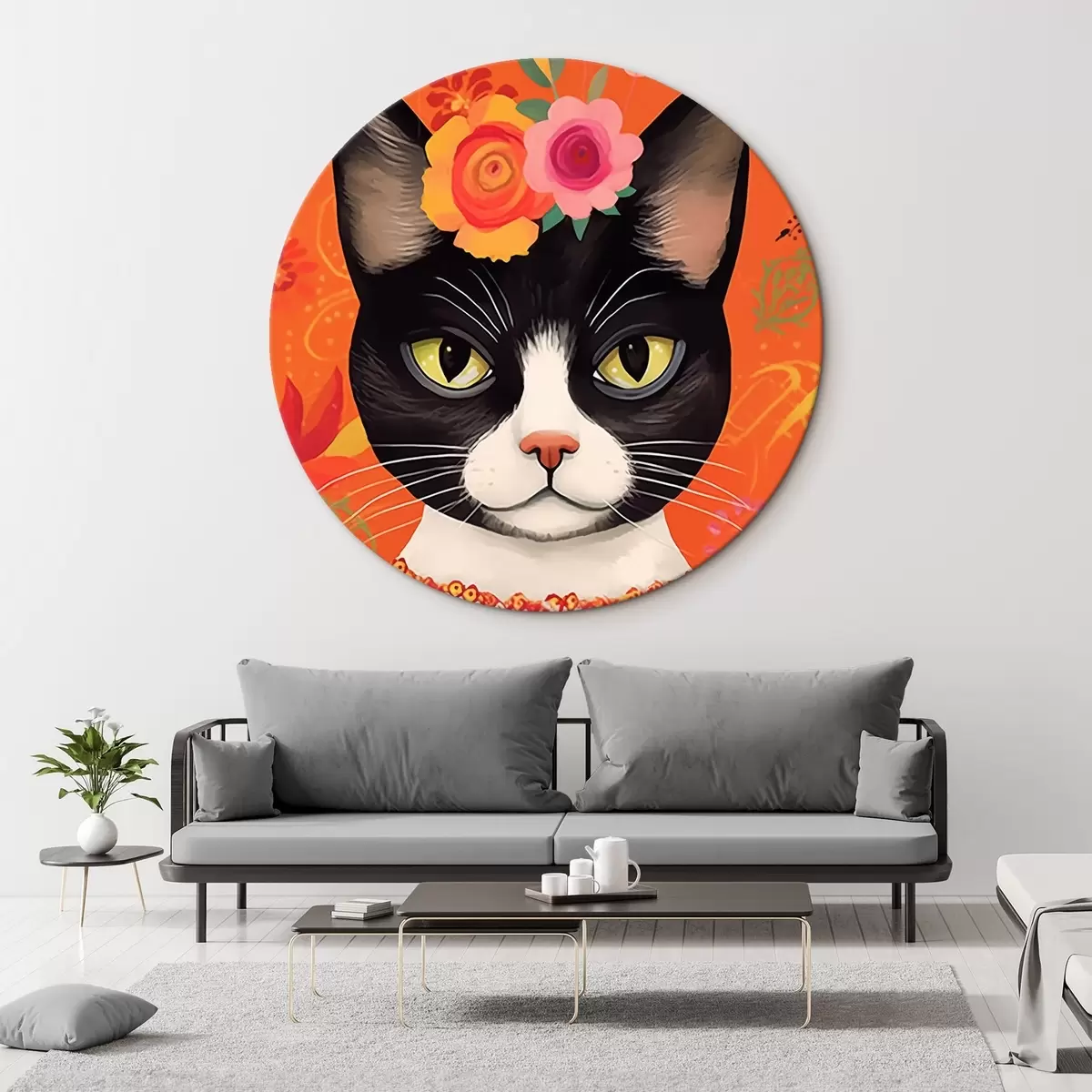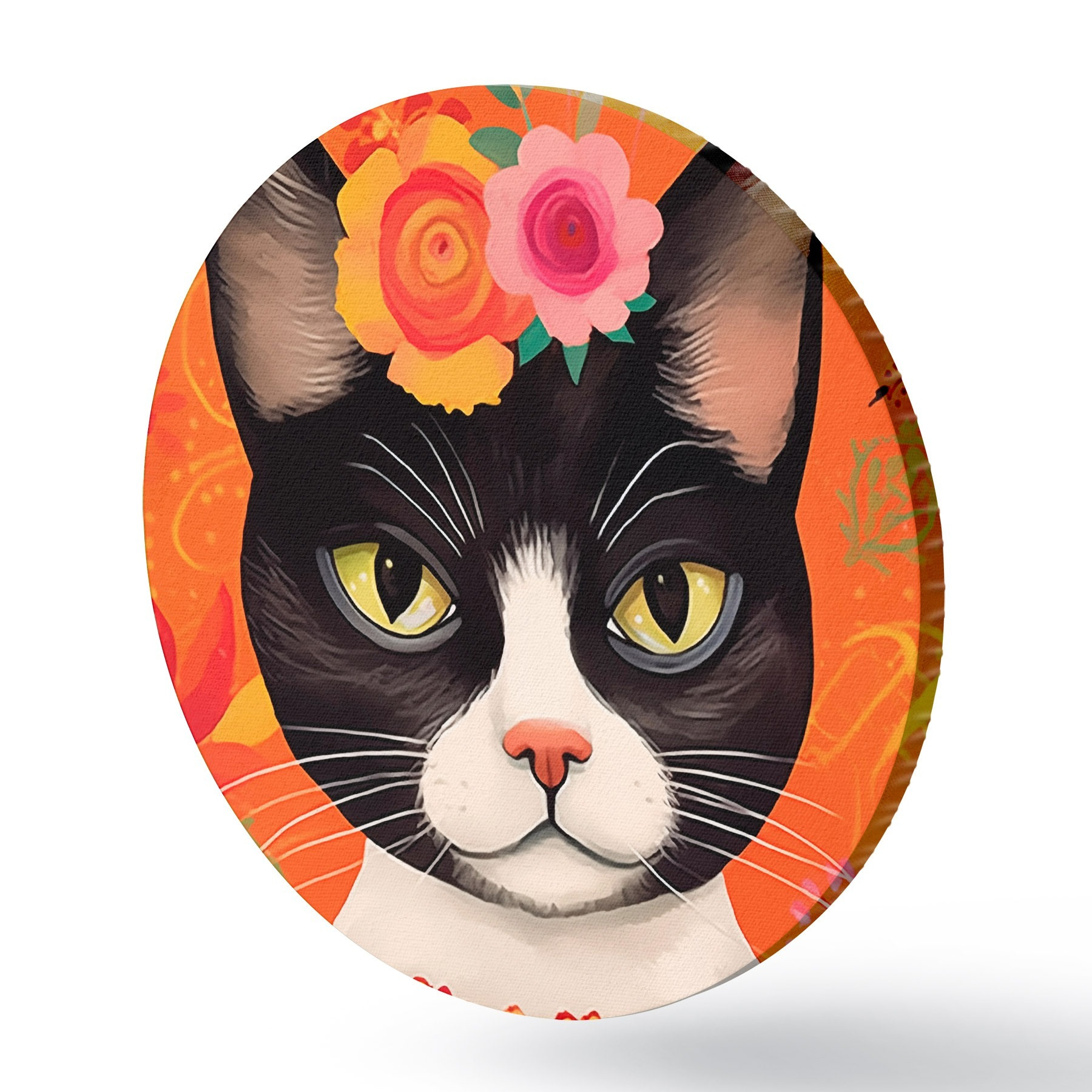 Cuadros redondos Gato con motivos florales r44262