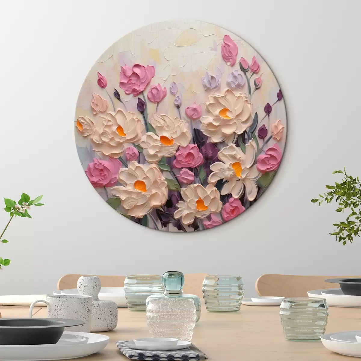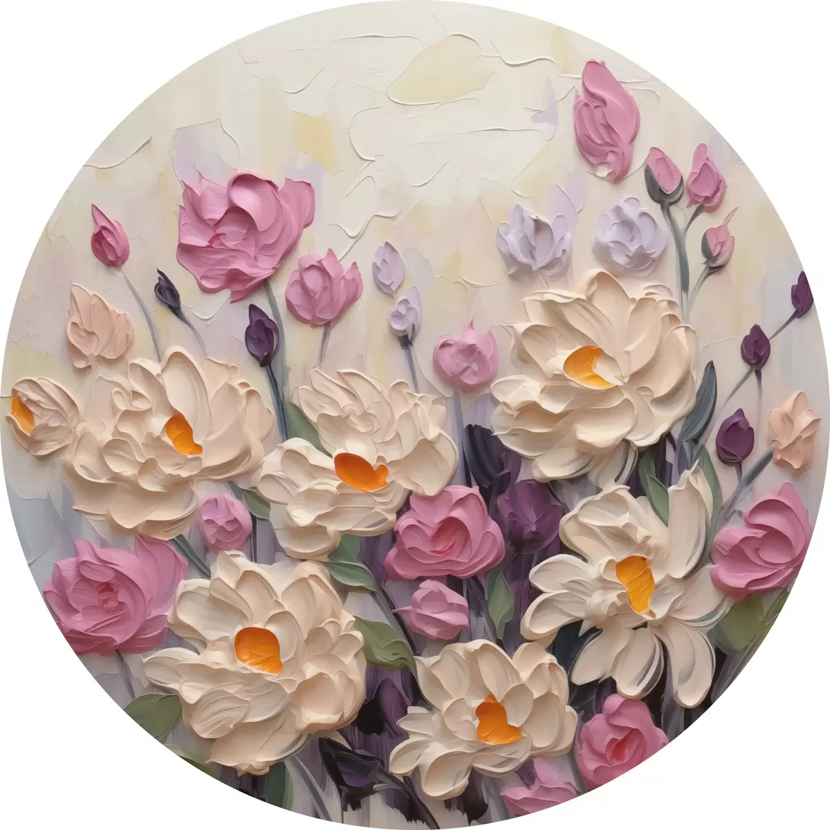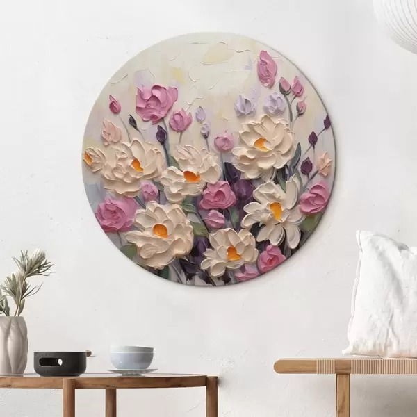 Cuadros redondos Pintura imitación flores brillantes r44291