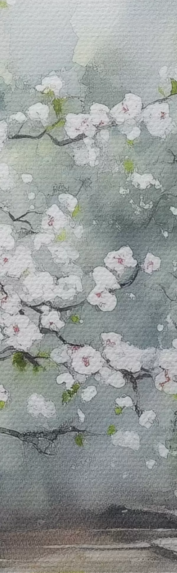 Foto Jardín japonés con cerezo y casa, estilo oriental, acuarela Nr r44309