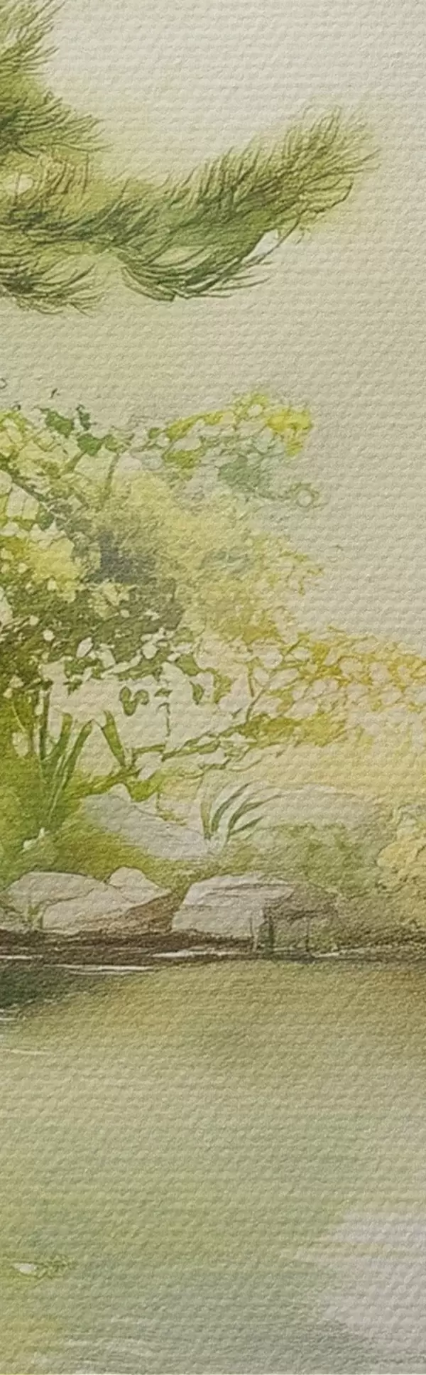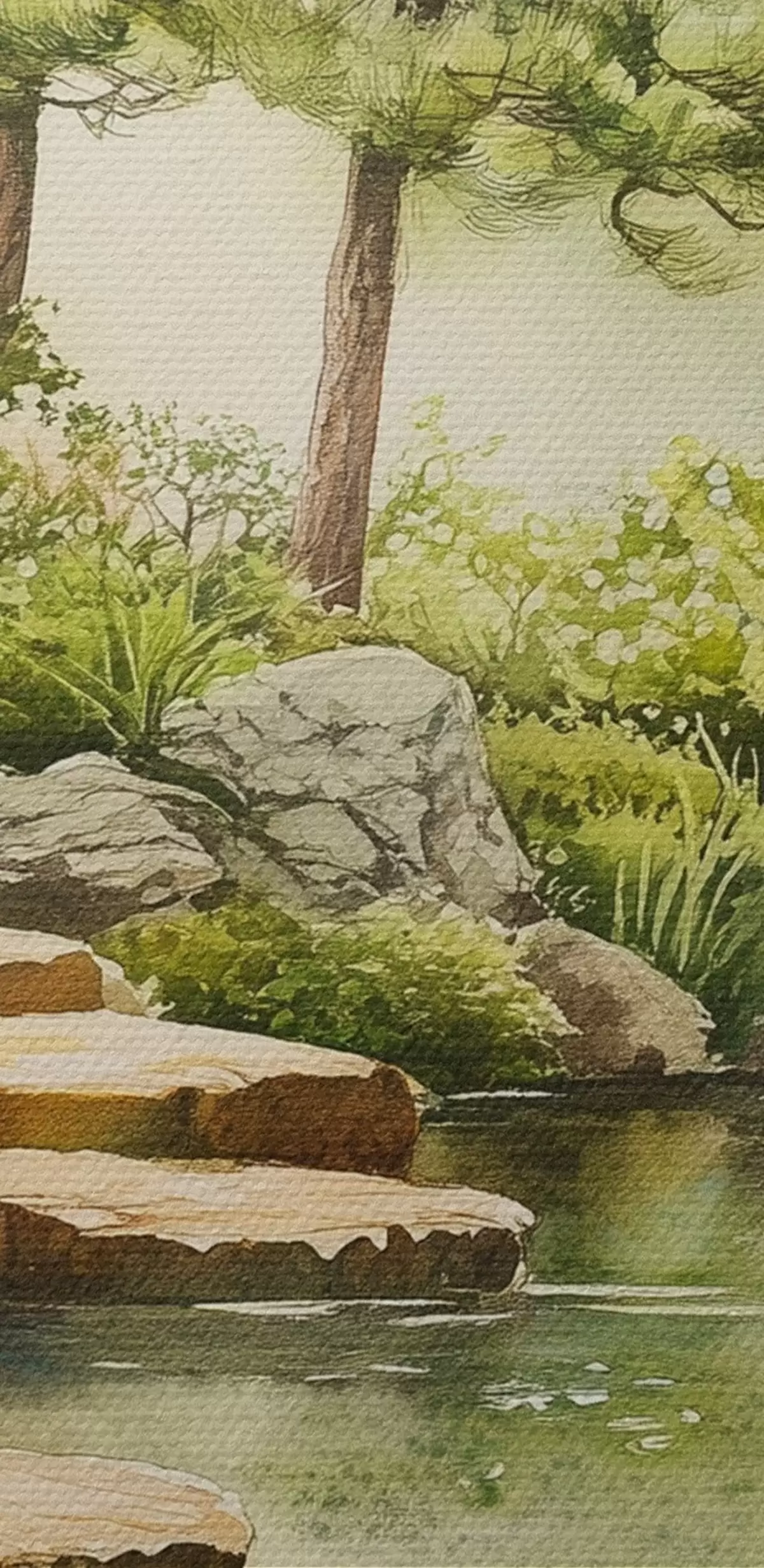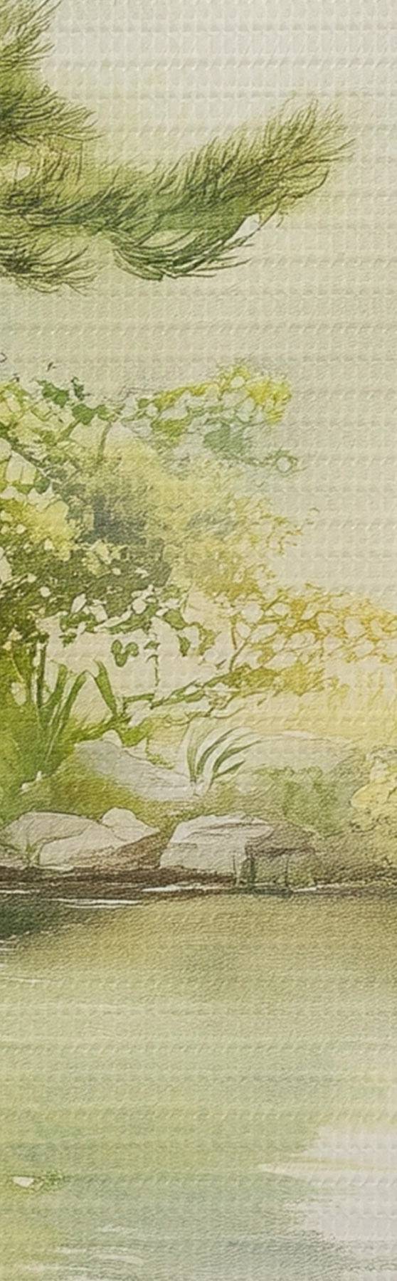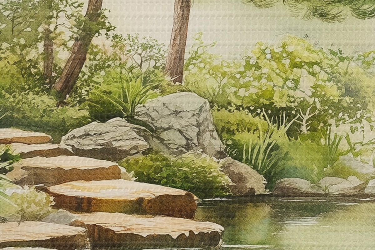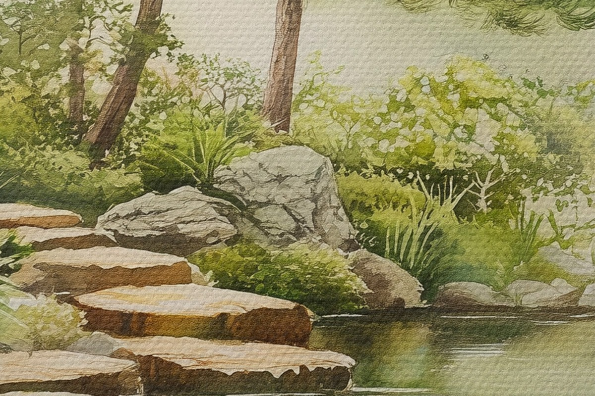 Foto Jardín oriental con lago y árboles, naturaleza, estilo acuarela Nr r44313