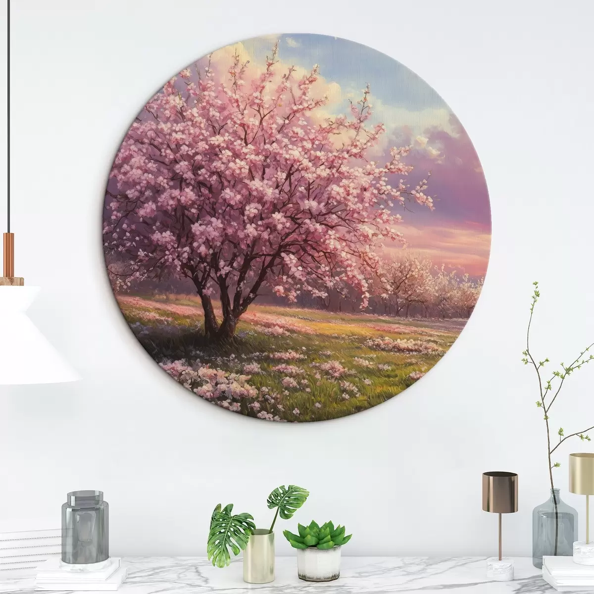 Cuadros redondos Árboles rosas en flor r44324