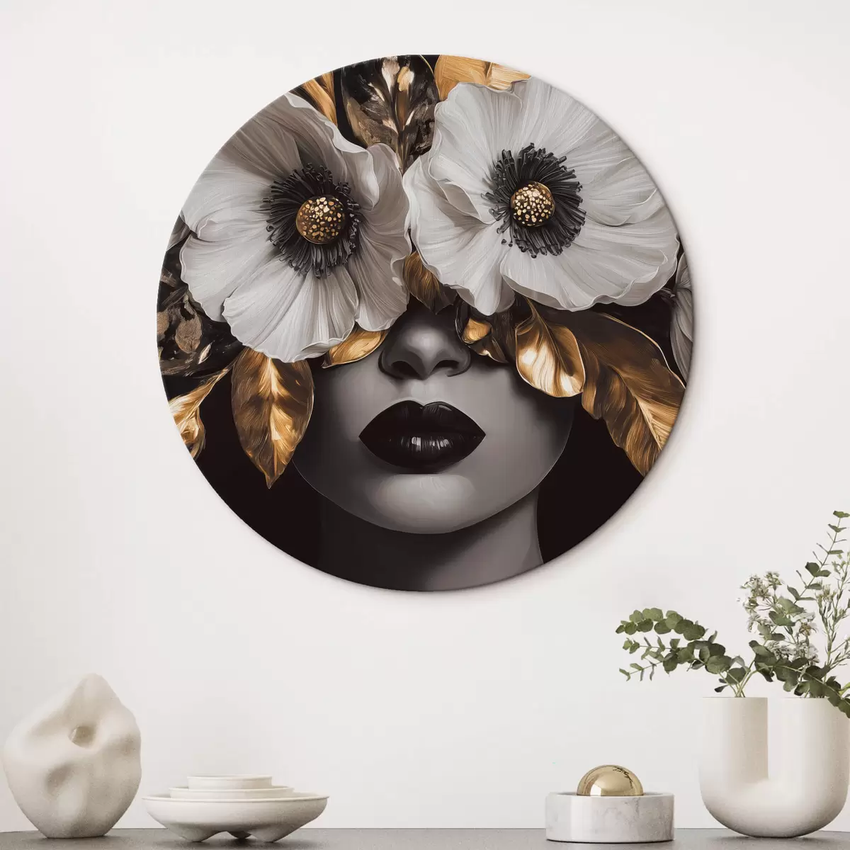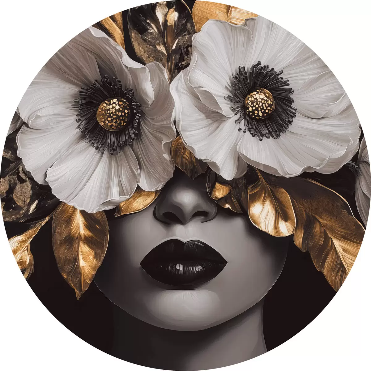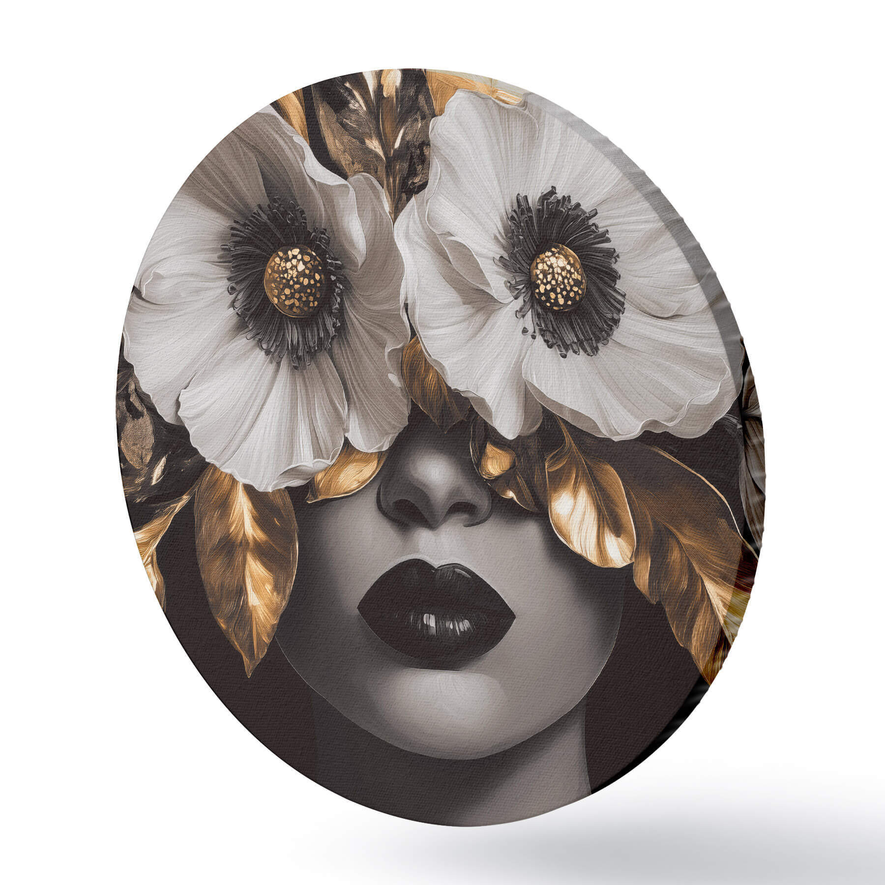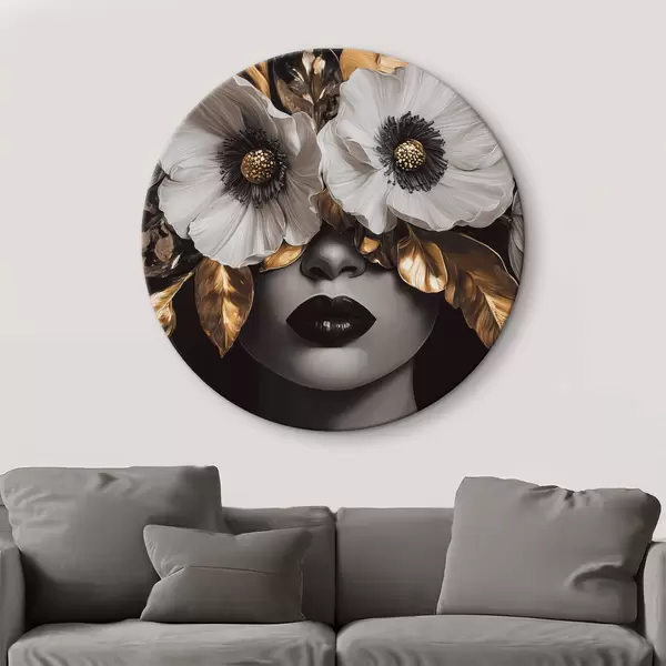 Cuadros redondos Retrato semiabstracto de una mujer con flores r44365