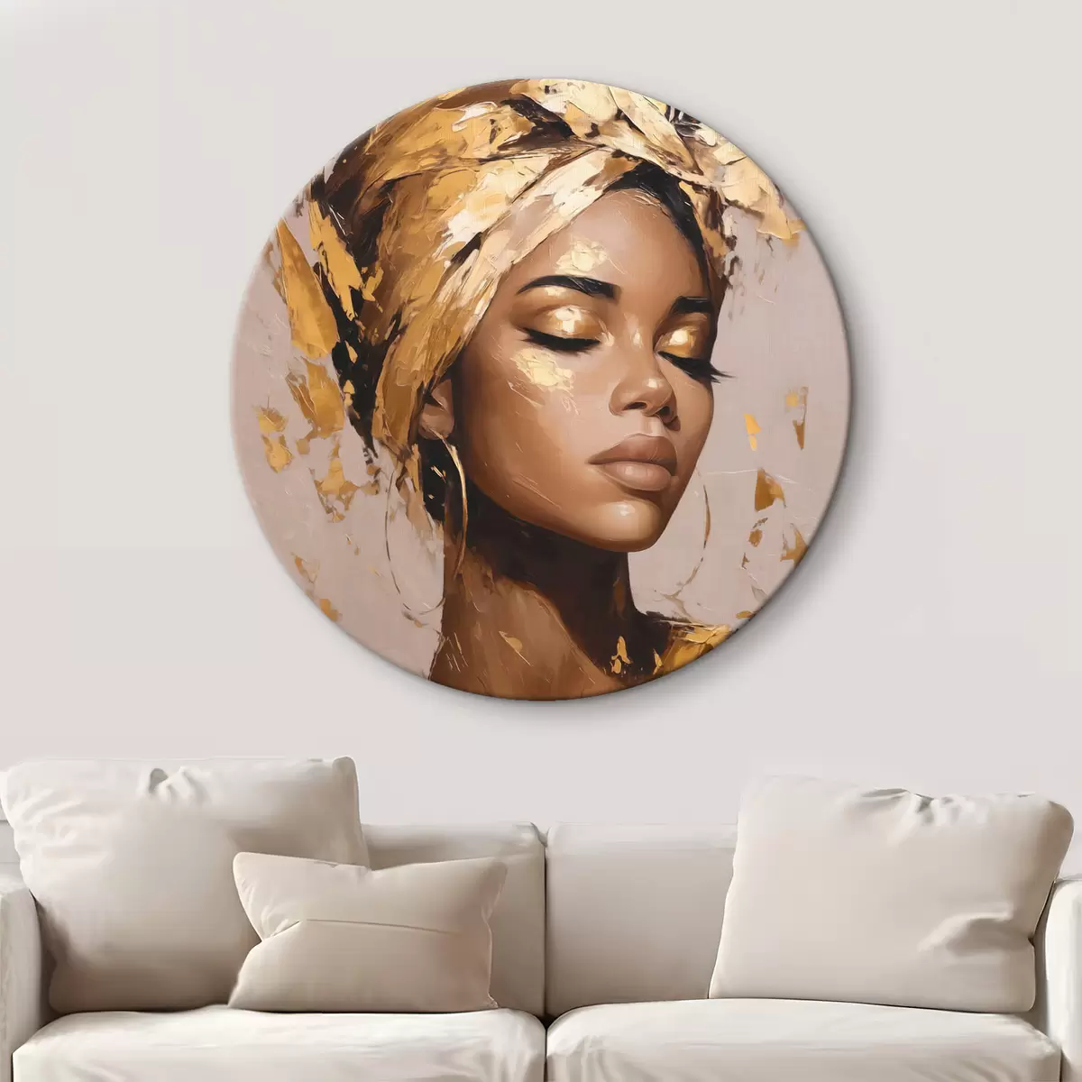 Cuadros redondos Una mujer hermosa y elegante, con un pañuelo en la cabeza r44368