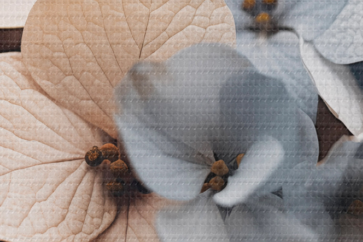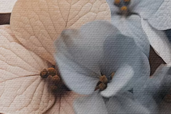 Foto Flores de hortensia, pétalos azul claro y beige, con texturas detalladas, elegante arreglo floral Nr r44394
