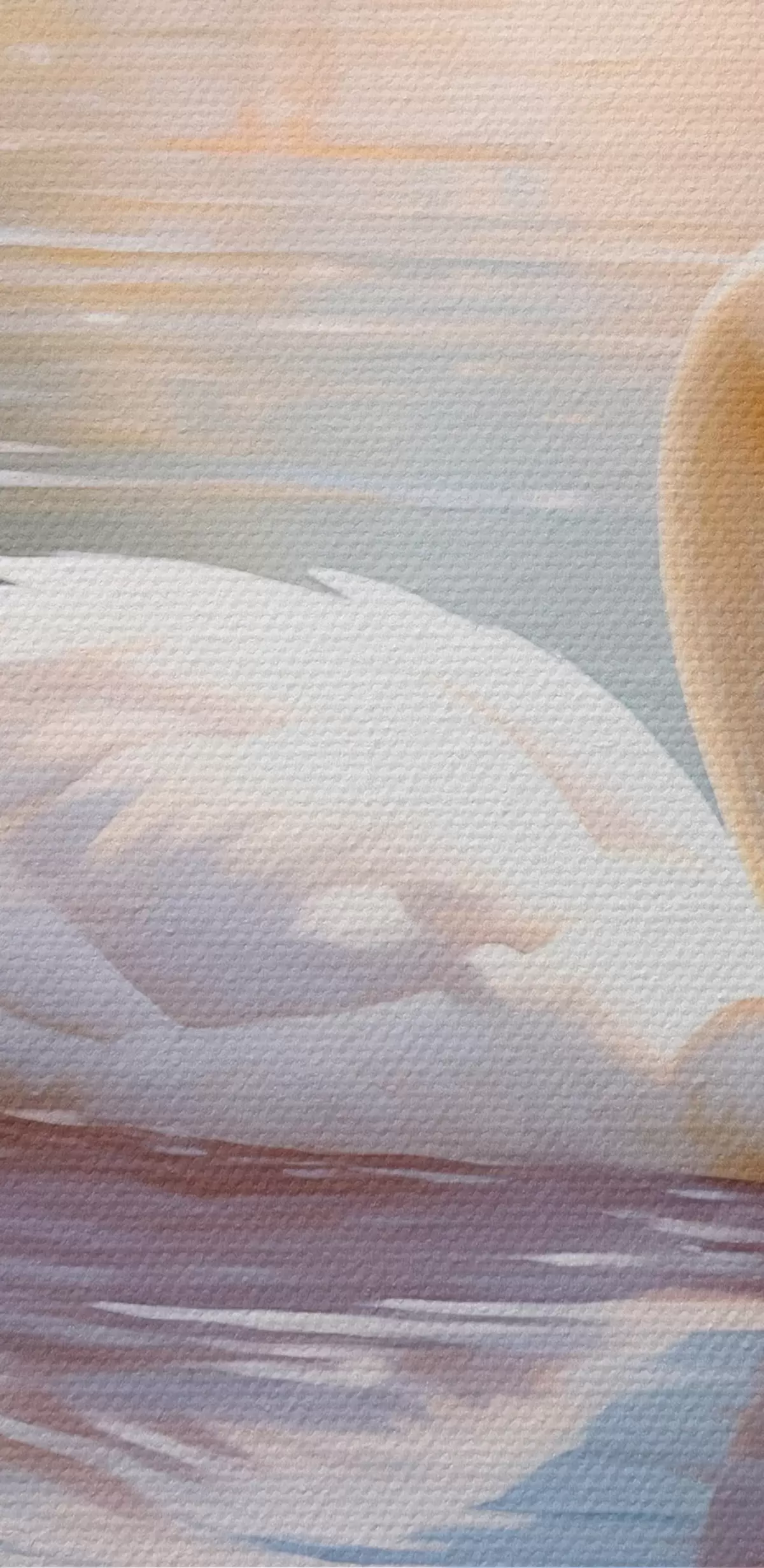 Foto Un cisne blanco nadando en un lago con cerezos en flor, colores pastel Nr r44396