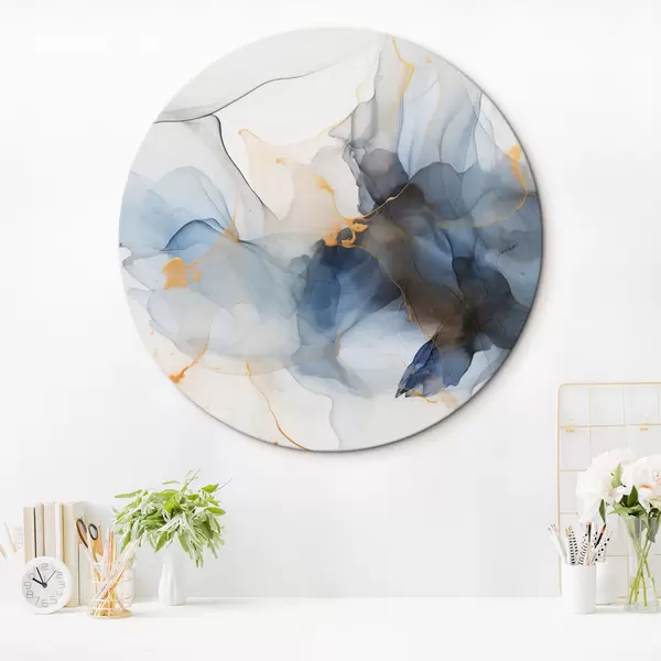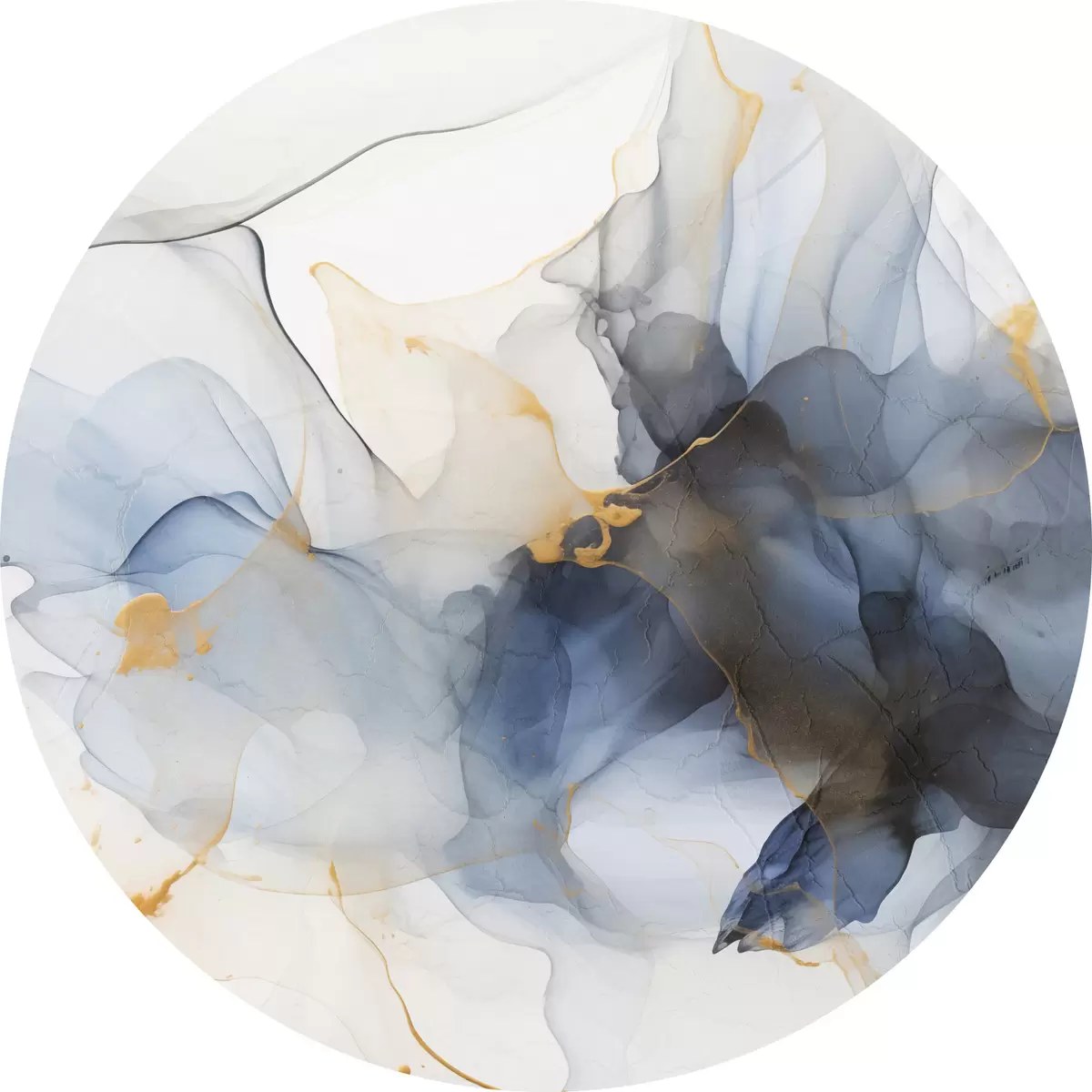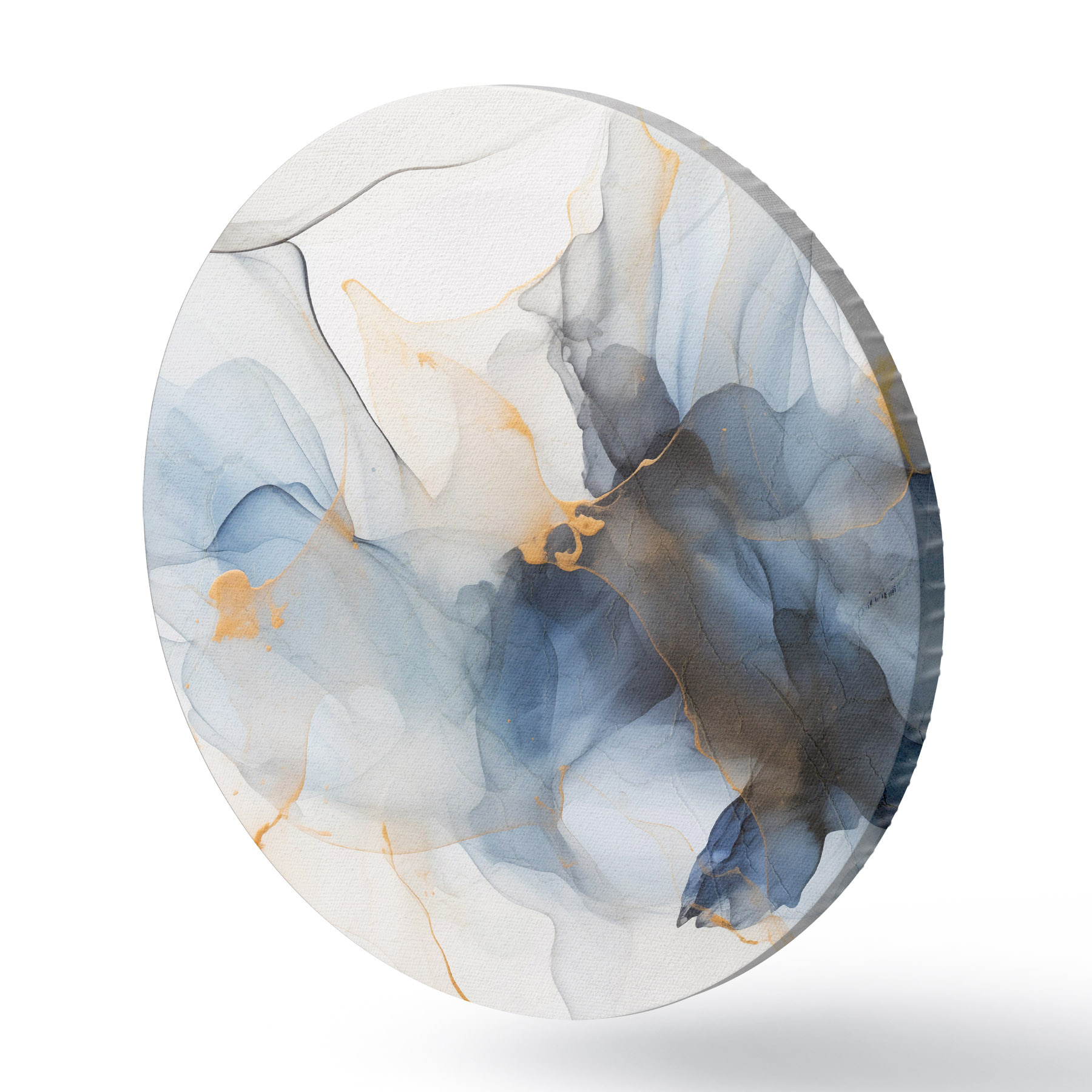 Cuadros redondos Pintura abstracta con tinta azul, formas fluidas y orgánicas, texturas delicadas sobre fondo blanco r44397