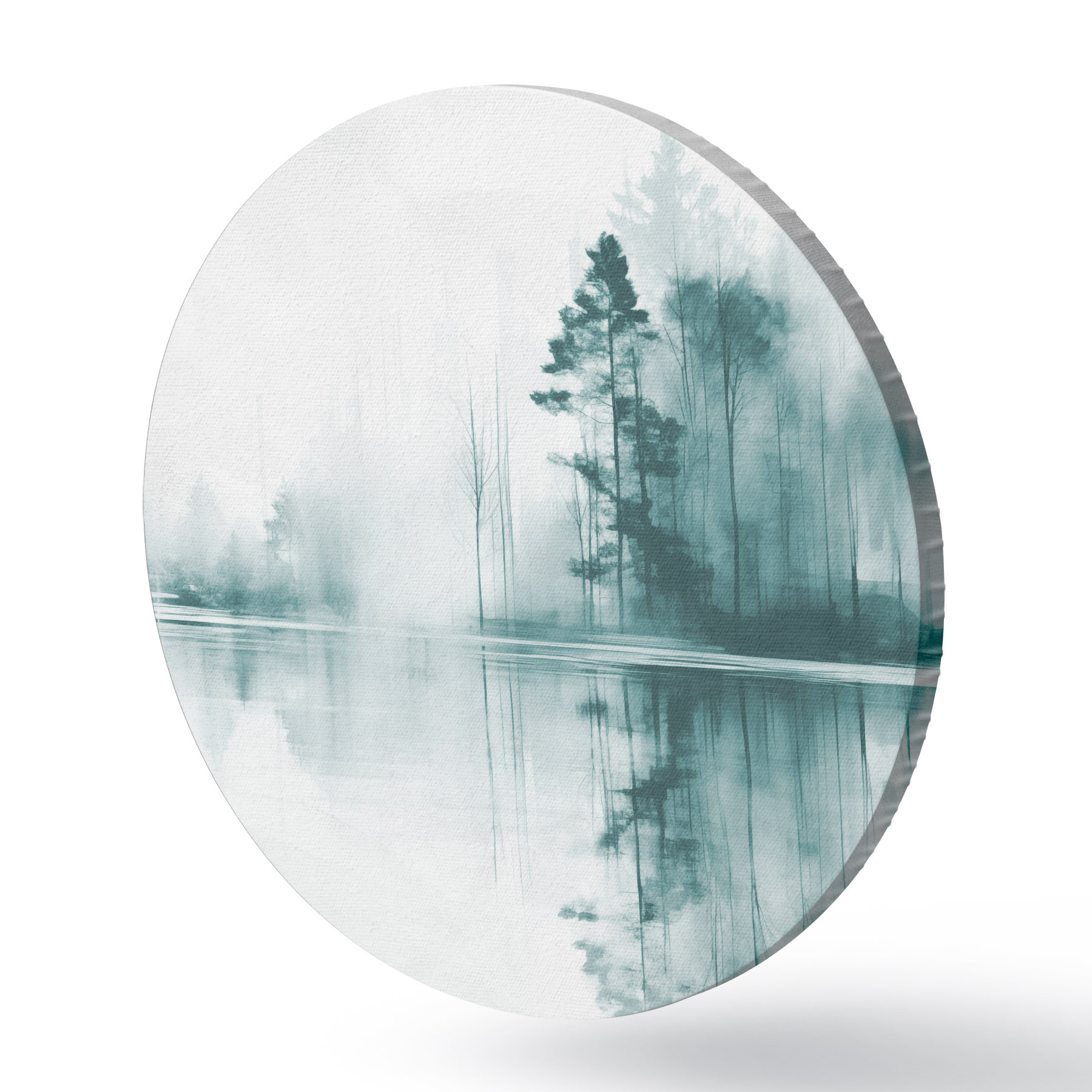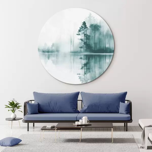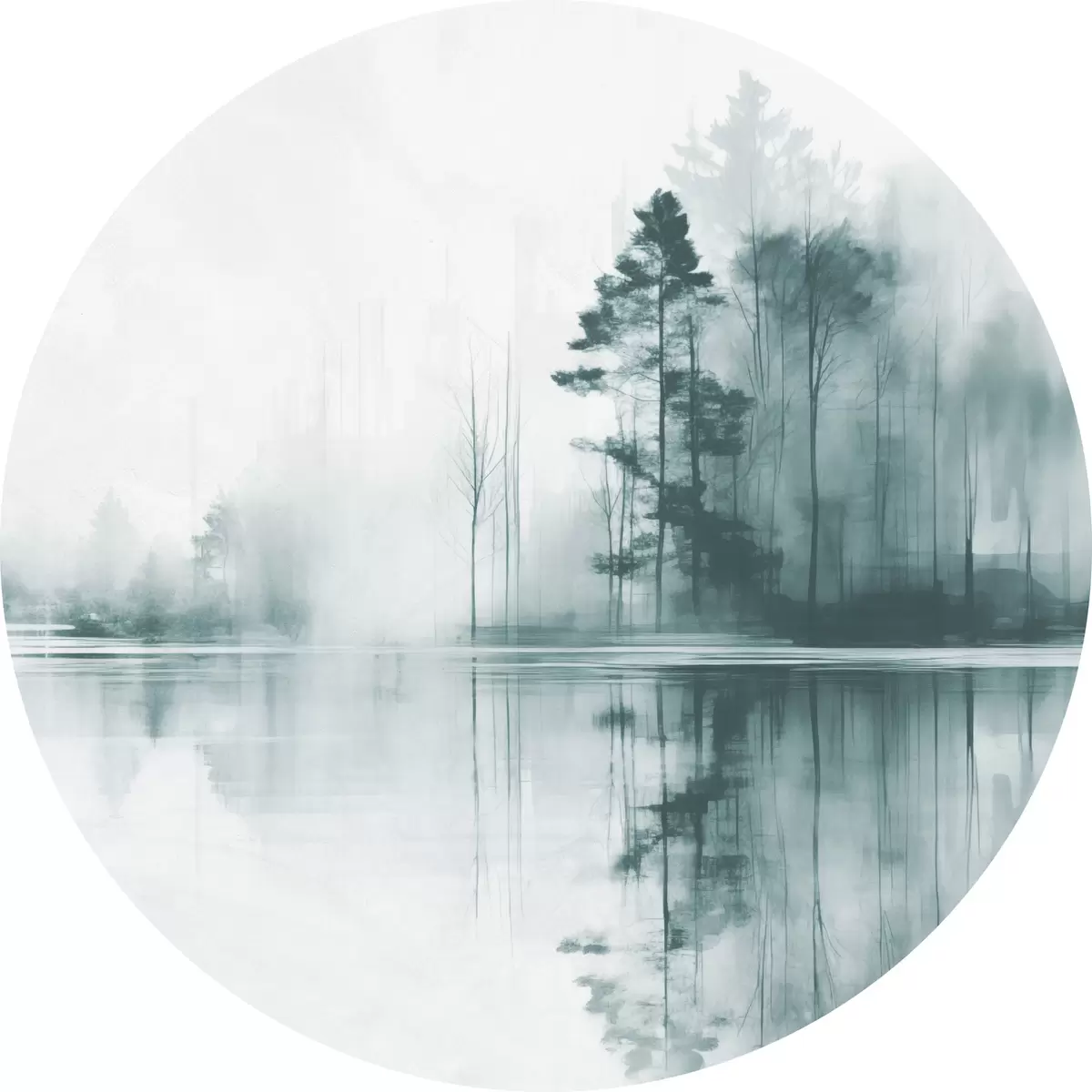 Cuadros redondos Bosque abstracto con altos árboles reflejados en el agua, paleta de colores apagados r44403
