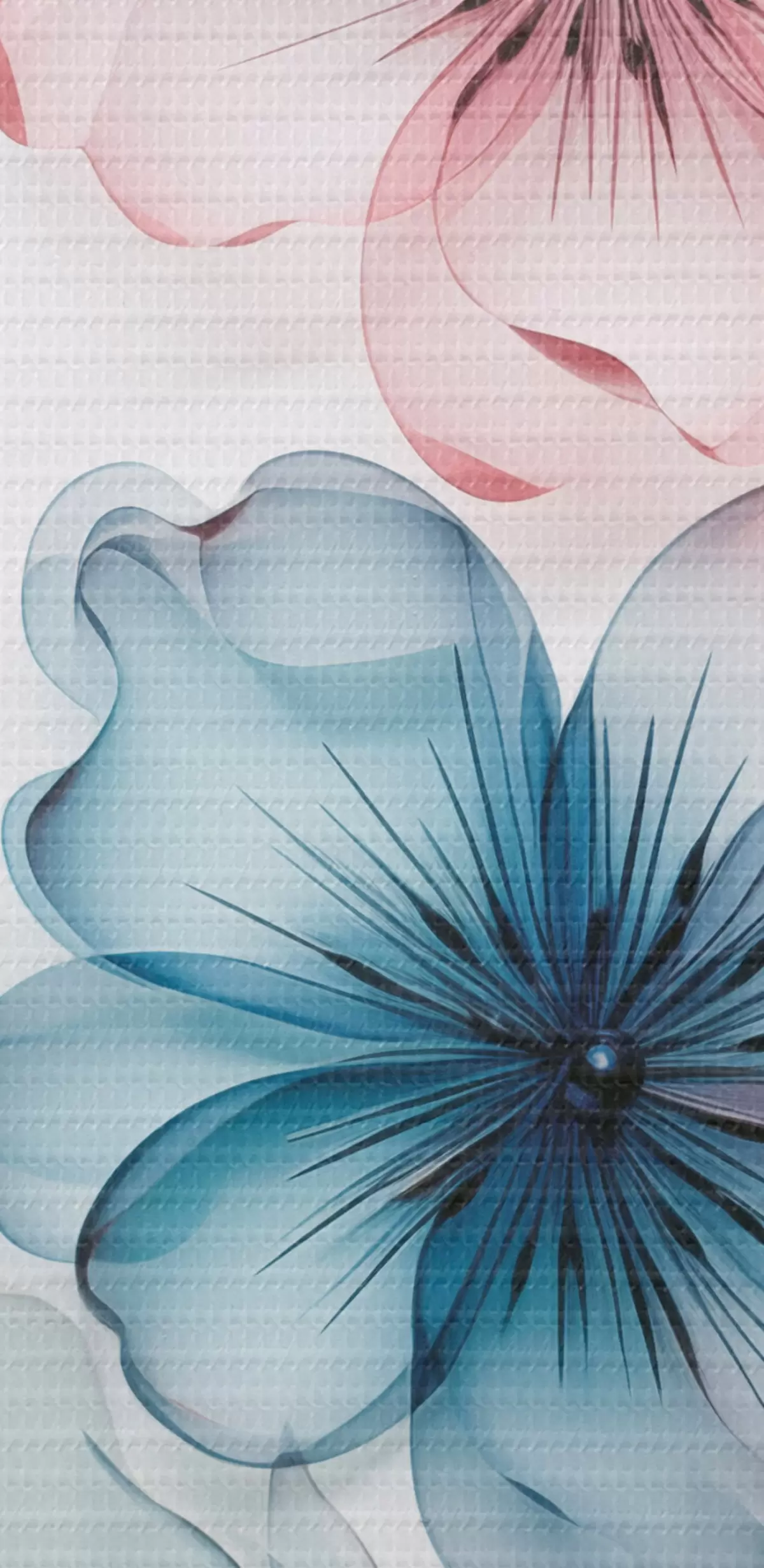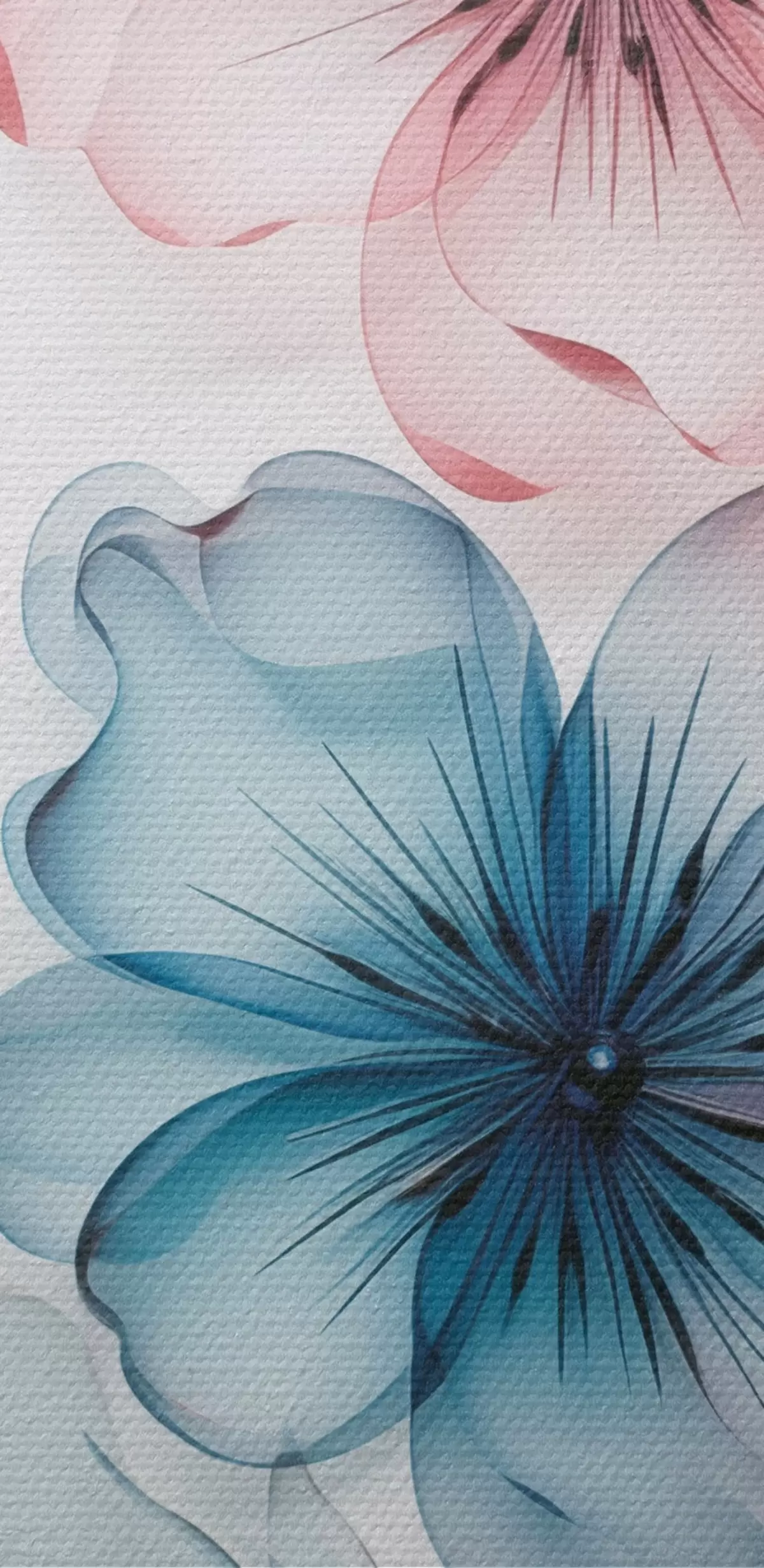 Foto Flores translúcidas de color rosa y azul apagados con estambres y tallos visibles Nr r44405