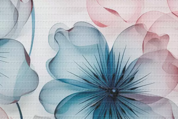Foto Flores translúcidas de color rosa y azul apagados con estambres y tallos visibles Nr r44405