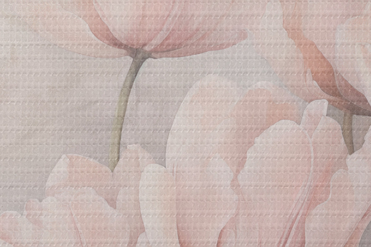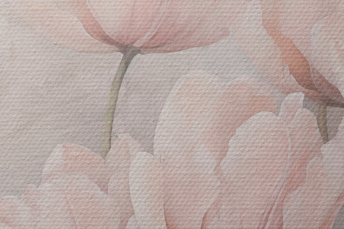 Foto Tulipanes rosas con textura vintage y tallos largos, colores suaves y apagados, fondo gris claro Nr r44407