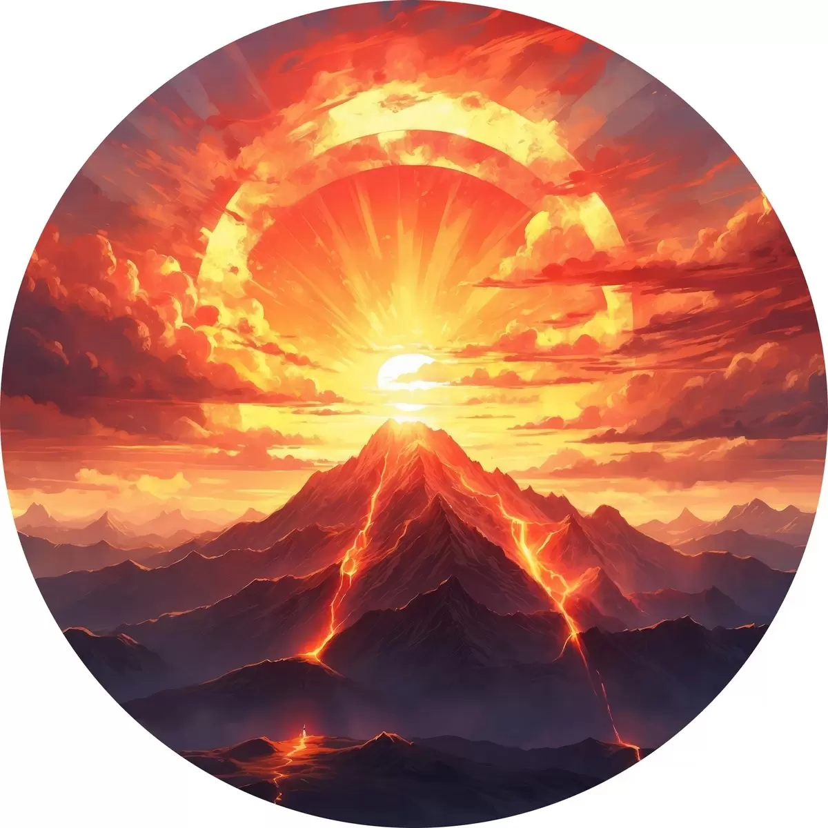 Cuadros redondos Puesta de sol cerca del volcán r44432