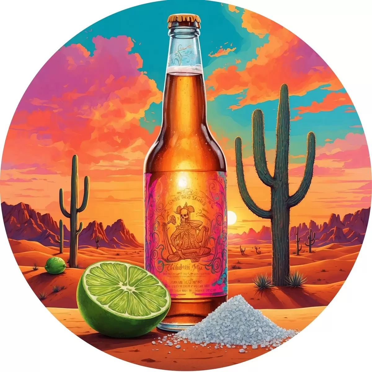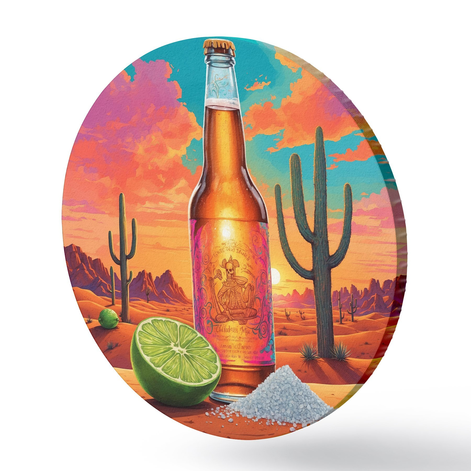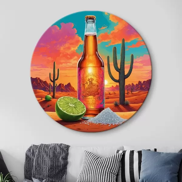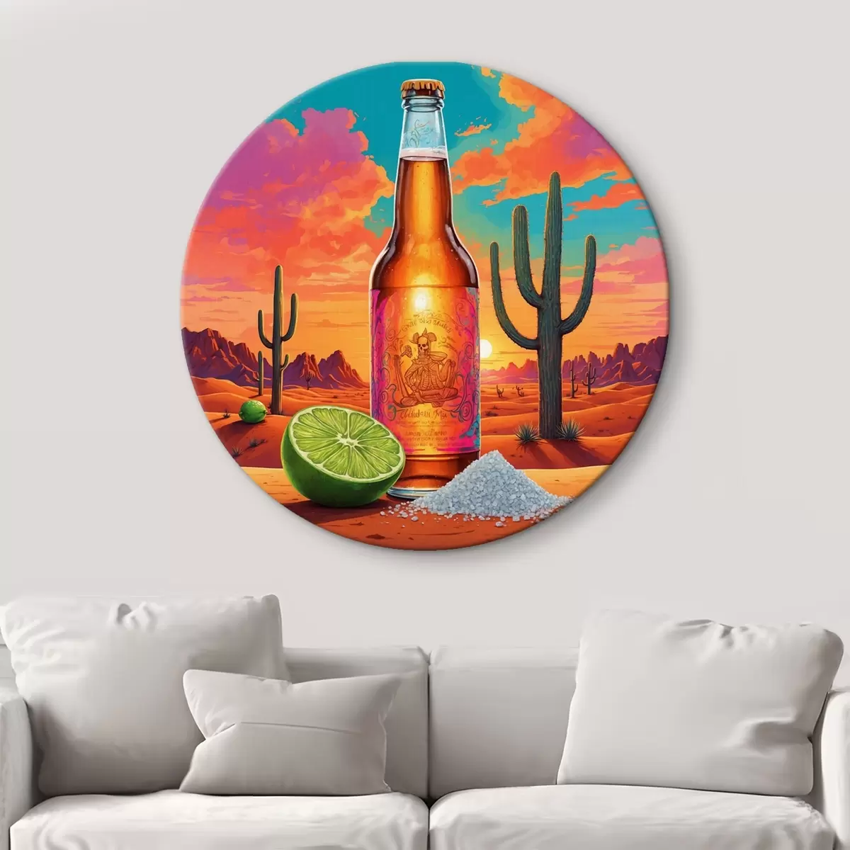 Cuadros redondos Cerveza y cal sobre un fondo de páramos americanos r44438