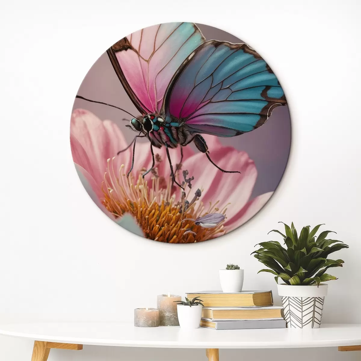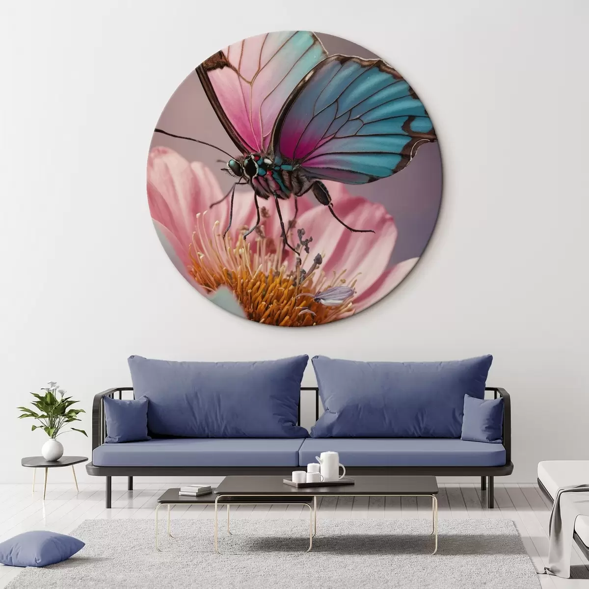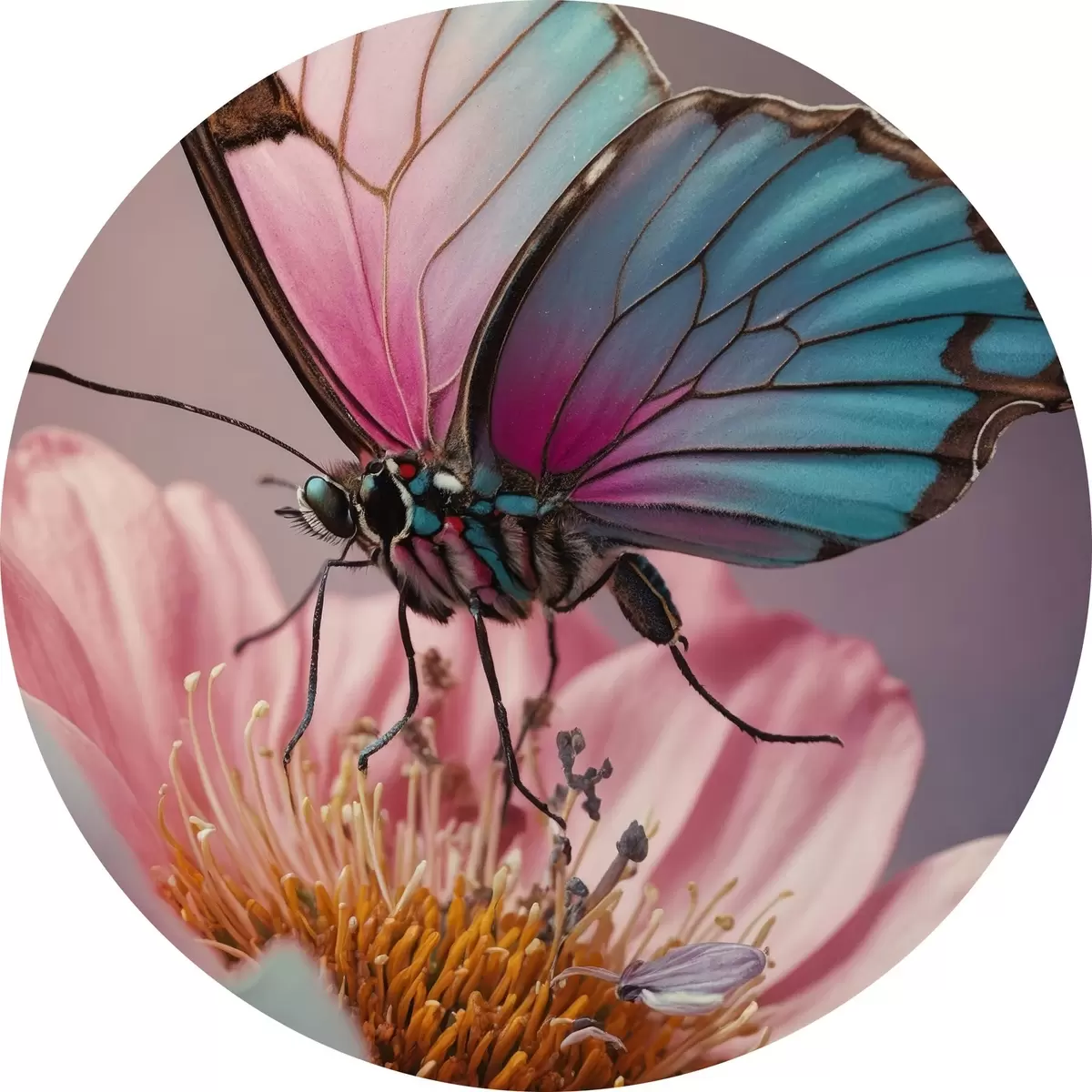 Cuadros redondos Mariposa sentada sobre una flor r44470