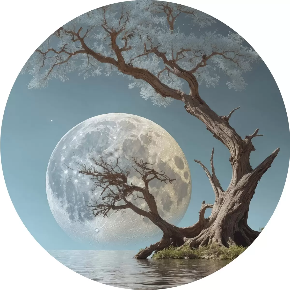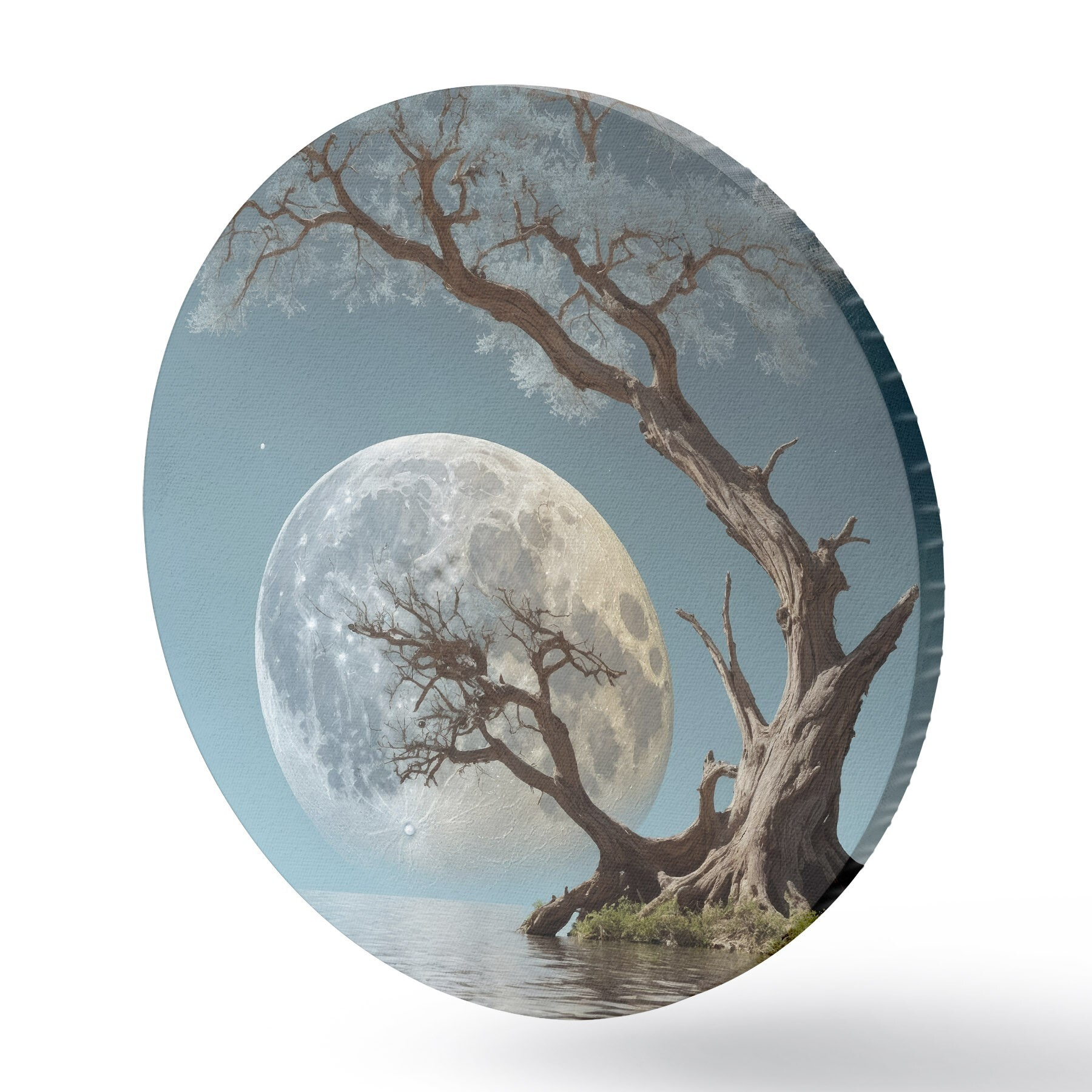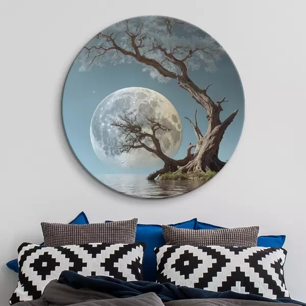 Cuadros redondos Árbol creciendo en medio de un lago sobre fondo lunar r44481
