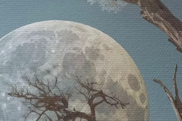 Foto Árbol creciendo en medio de un lago sobre fondo lunar Nr r44481