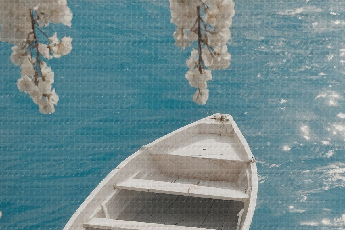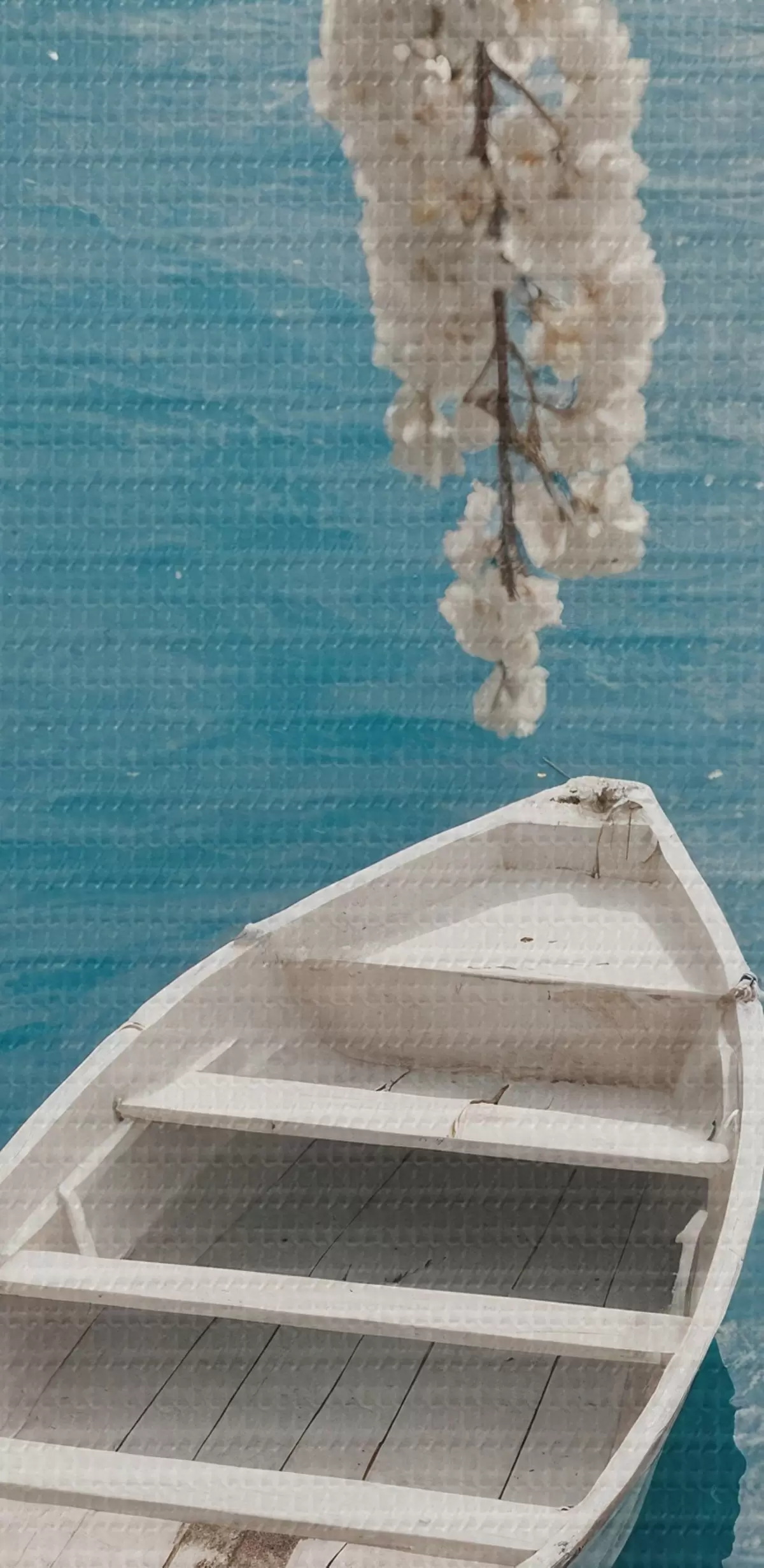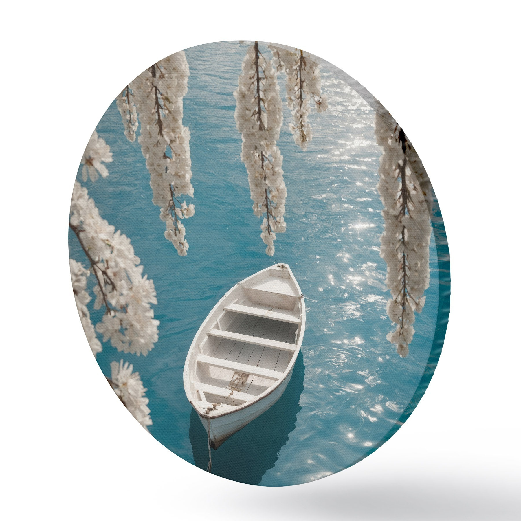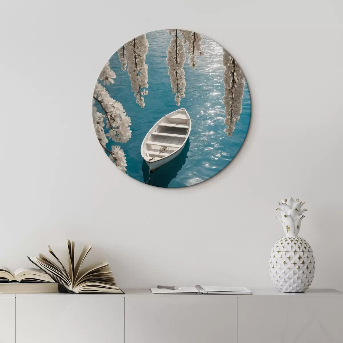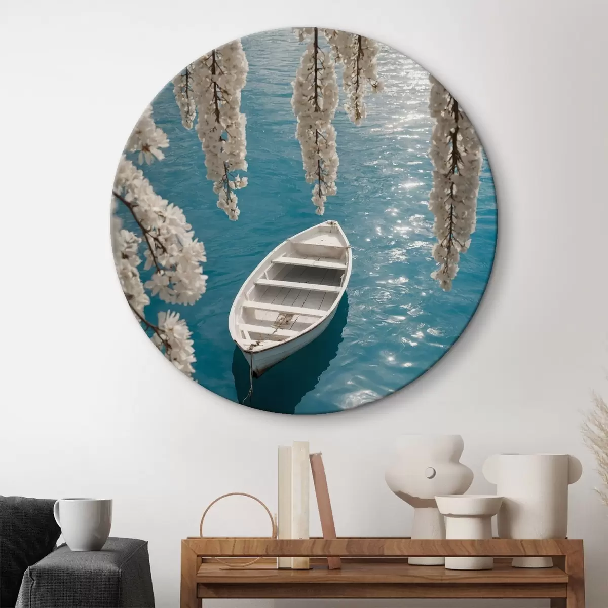 Cuadros redondos Barco blanco bajo un árbol r44482