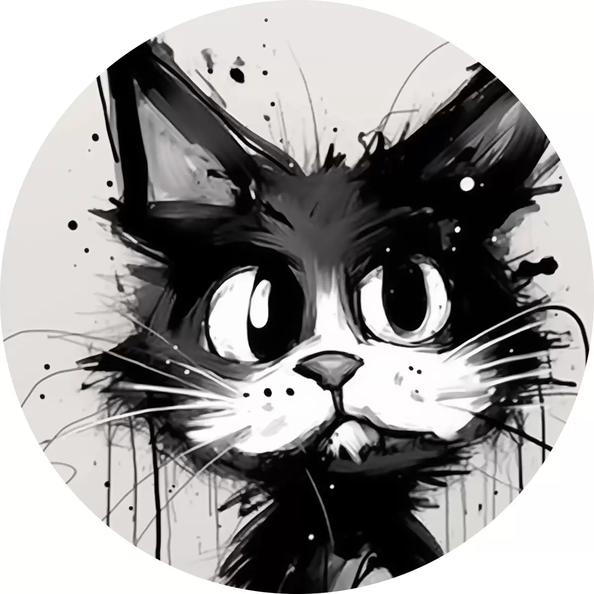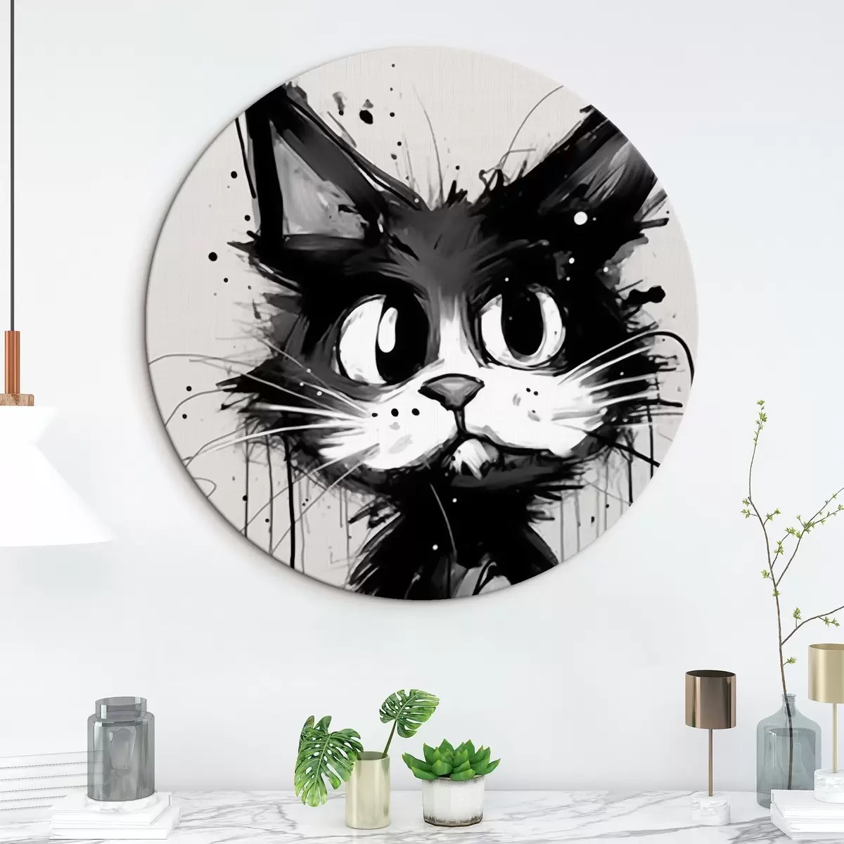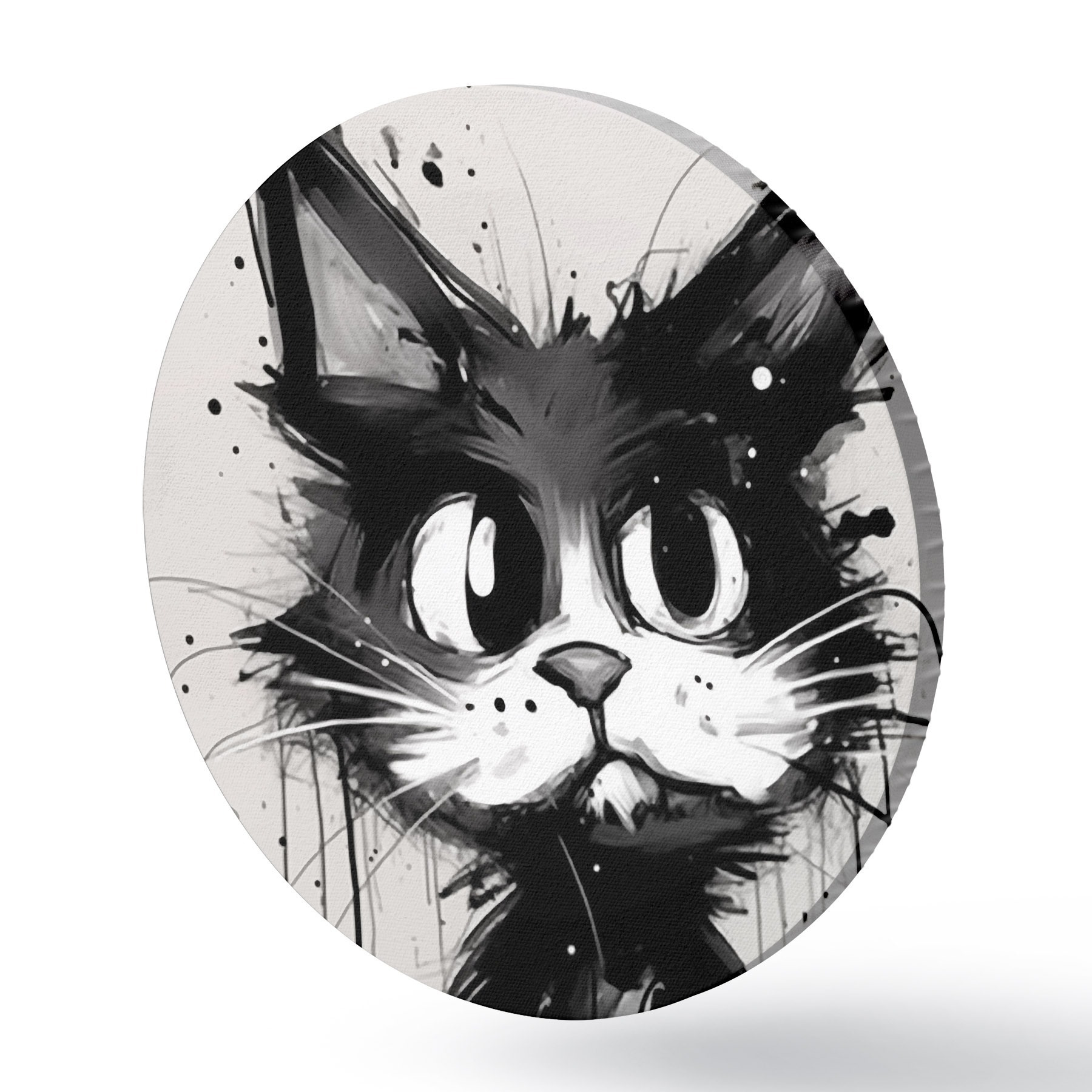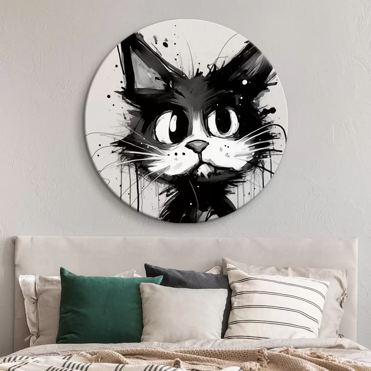 Cuadros redondos Gato en estilo boceto con salpicaduras de pintura r44483