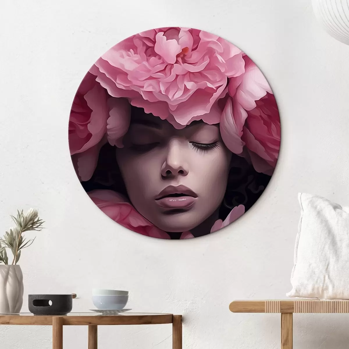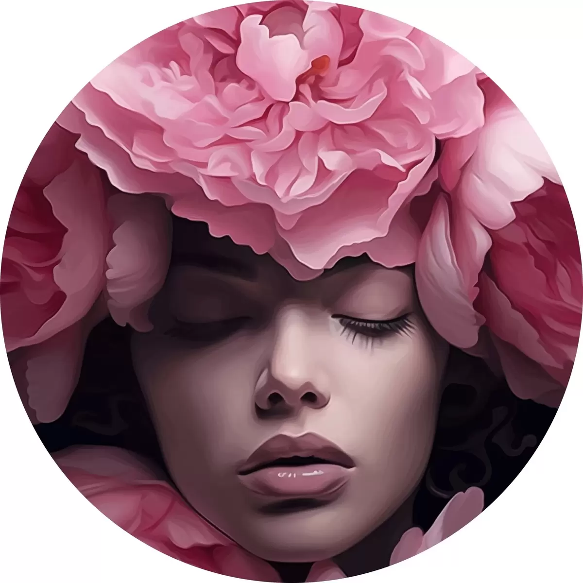 Cuadros redondos Cara en pétalos r44490