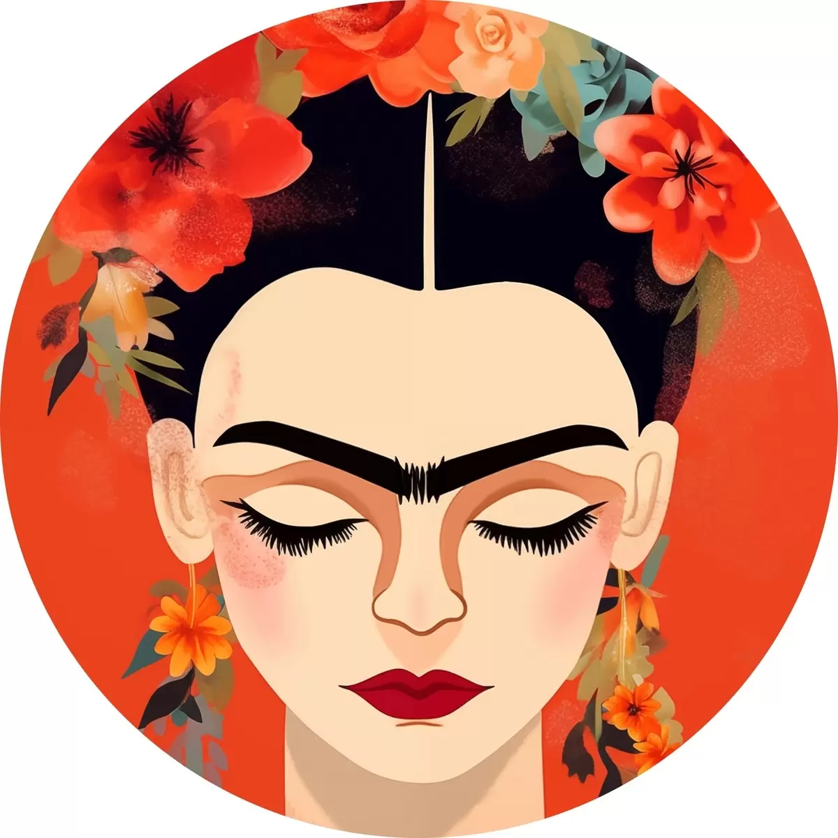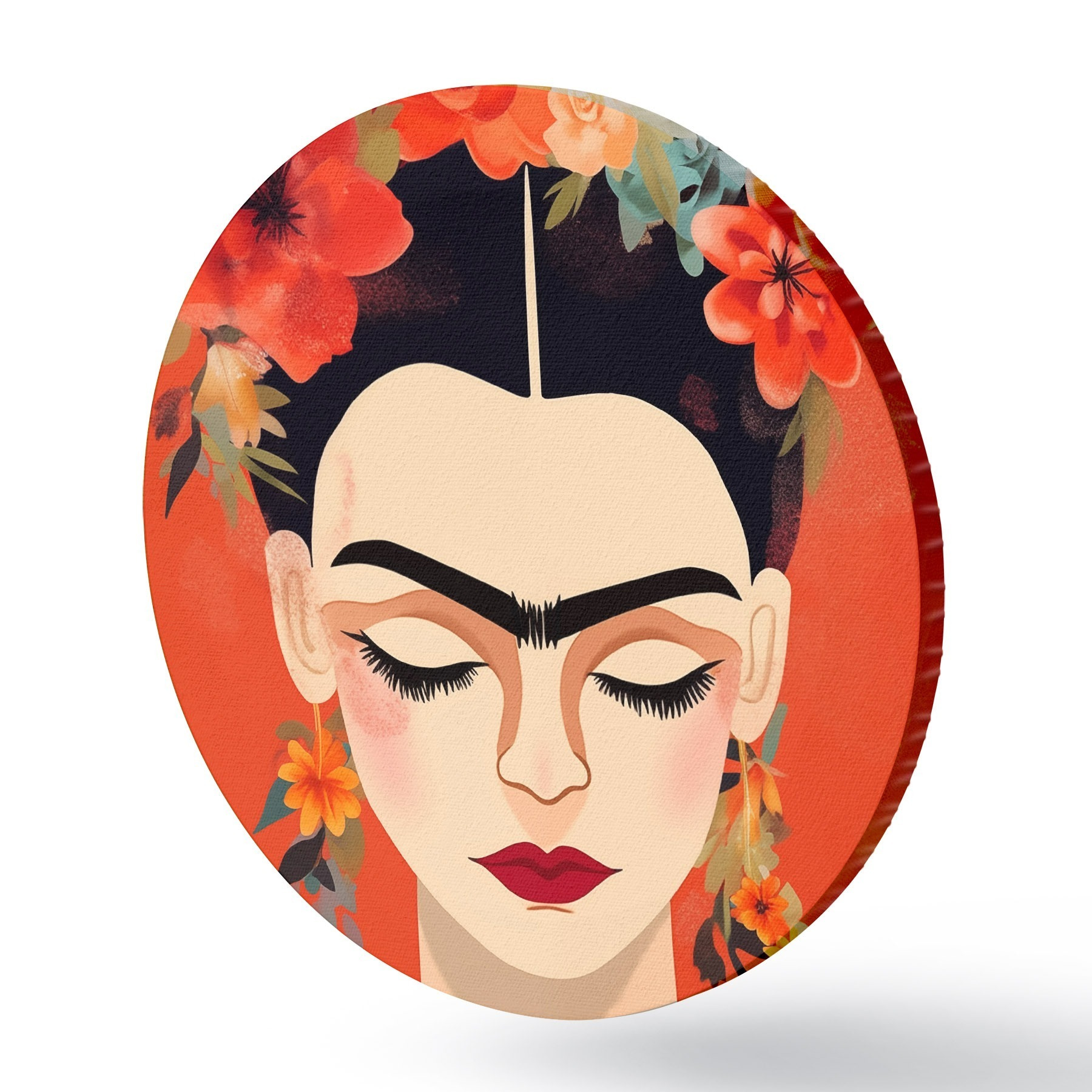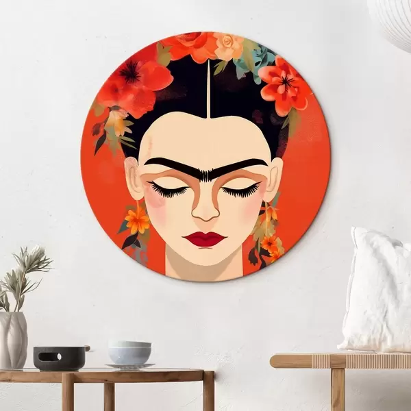 Cuadros redondos Frida con flores r44499