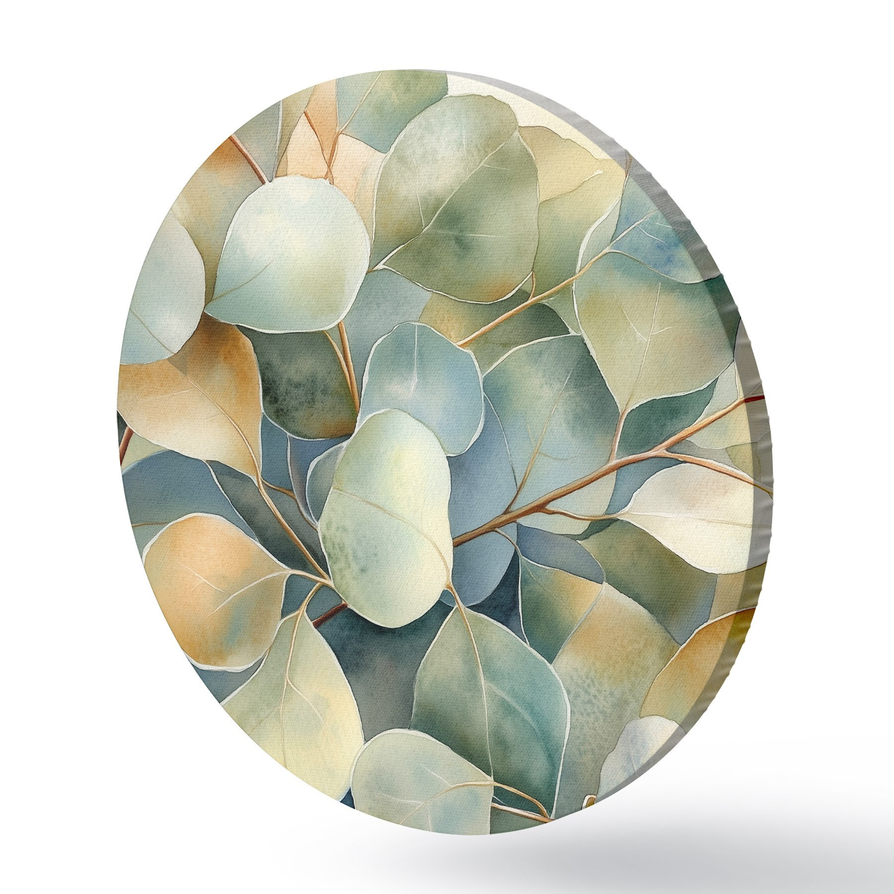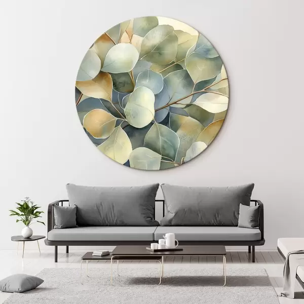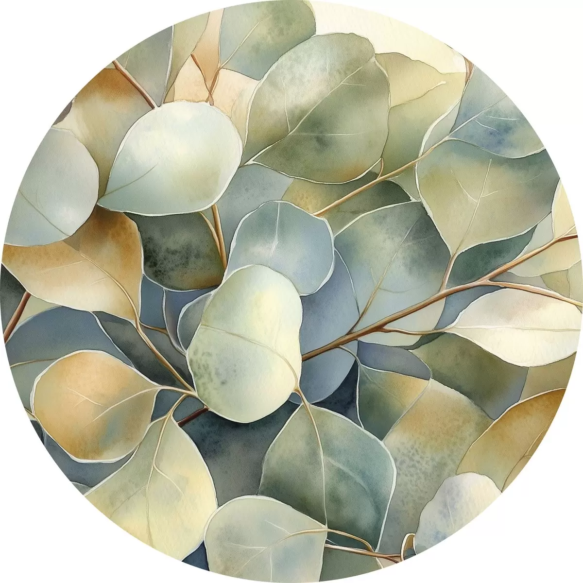 Cuadros redondos Hojas de eucalipto, estilo acuarela, naturaleza r44502