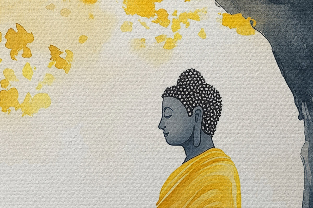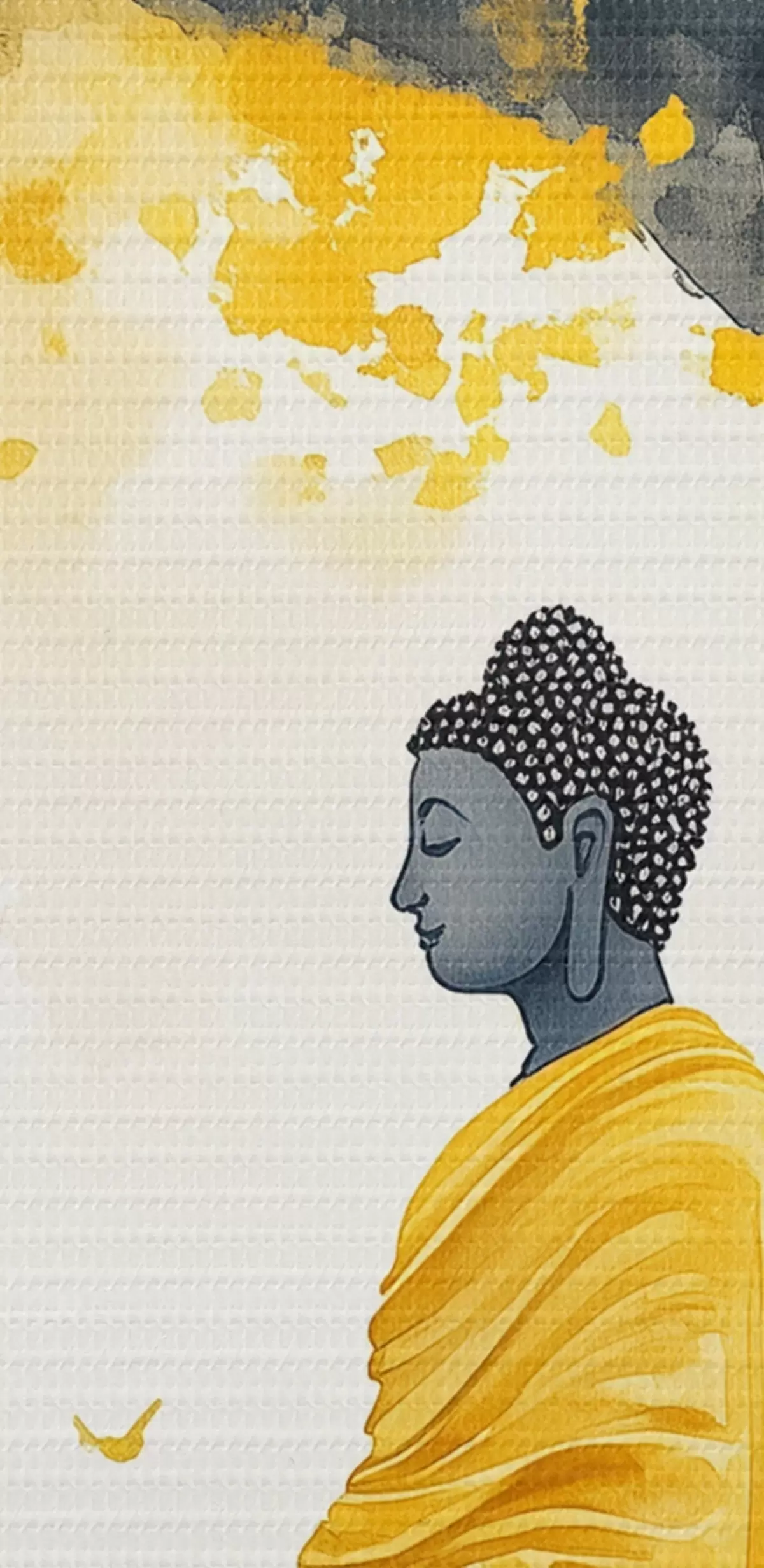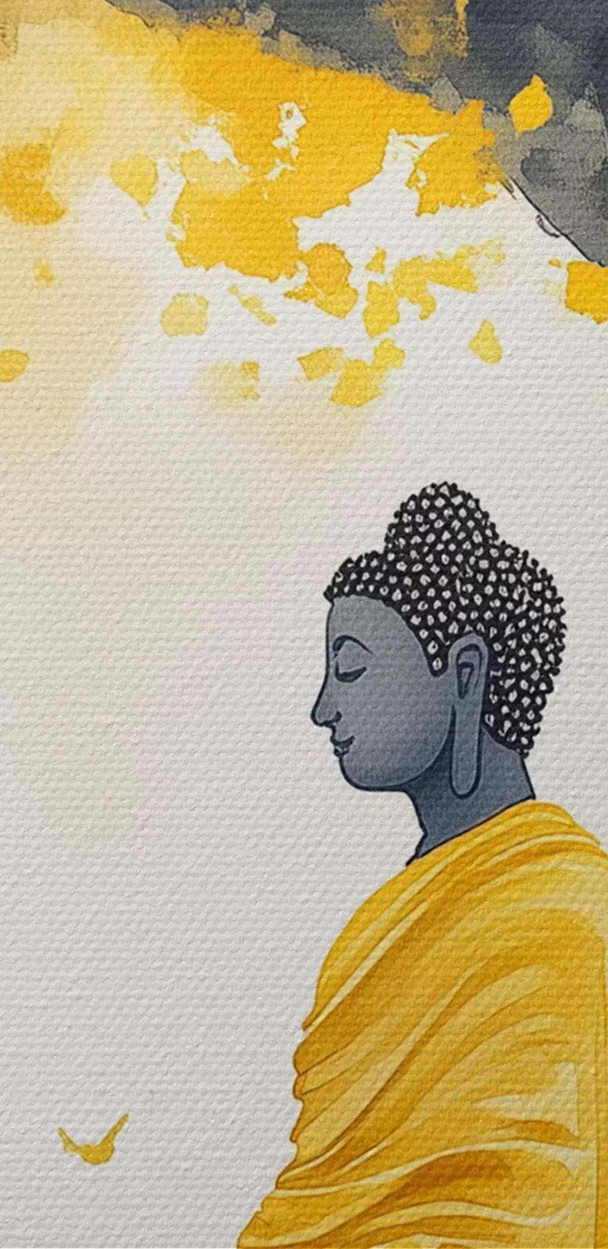 Foto Buda meditando bajo el árbol, colores amarillo y gris Nr r44509