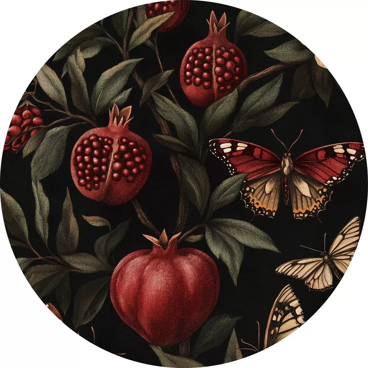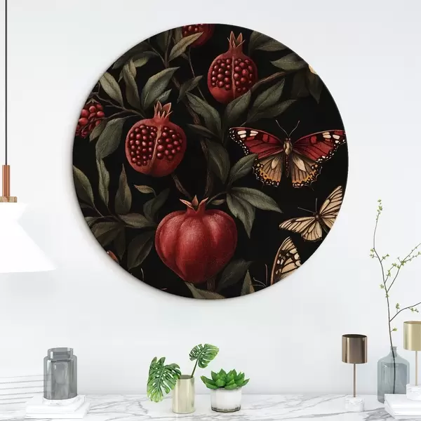 Cuadros redondos Arte botánico con granadas y mariposas r44511