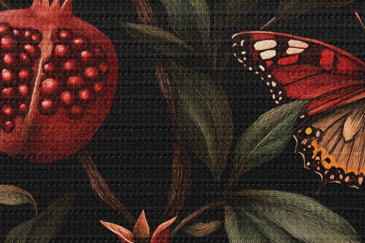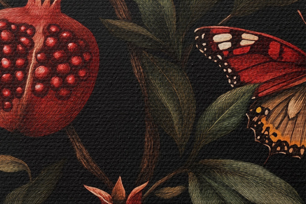 Foto Arte botánico con granadas y mariposas Nr r44511