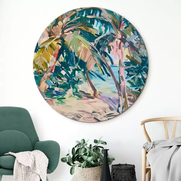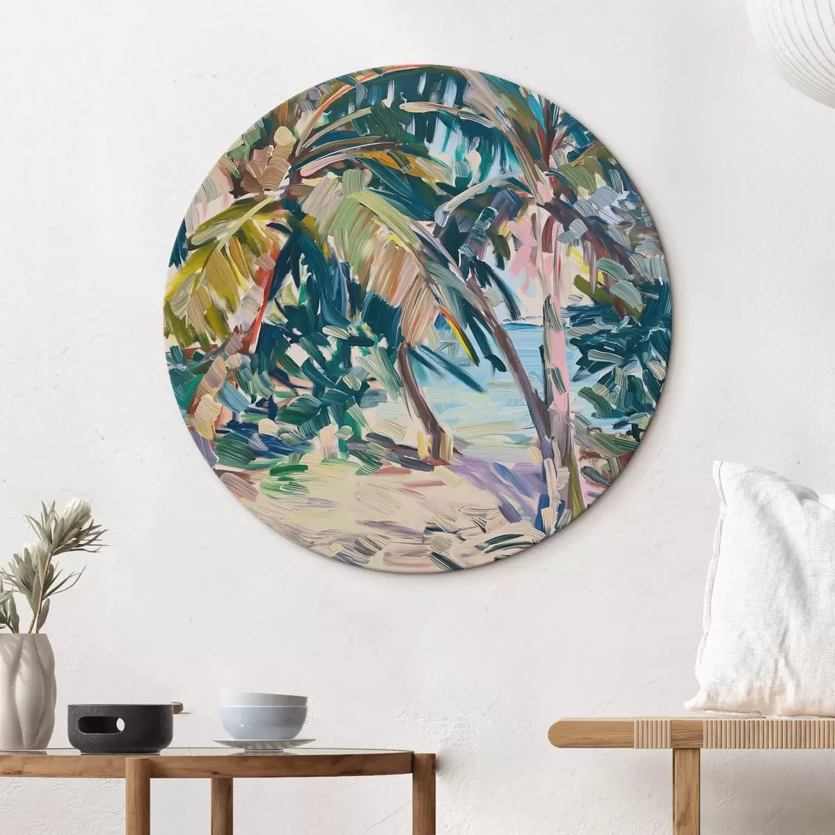 Cuadros redondos Abstracción de palmeras, imitación de pinceladas r44513