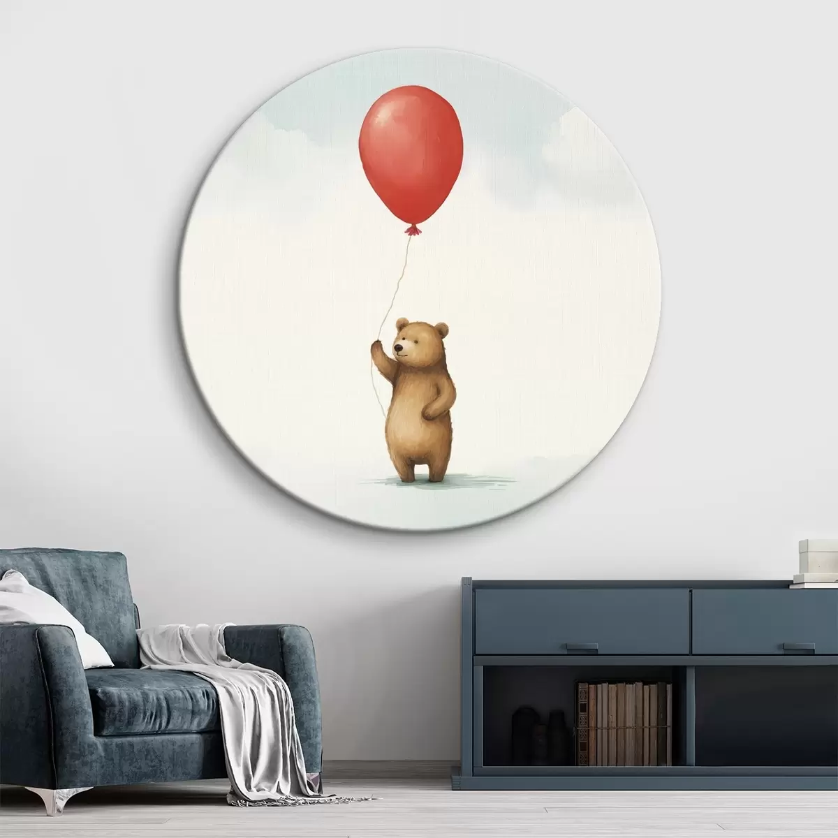 Cuadros redondos Un osito de peluche y un globo r44535