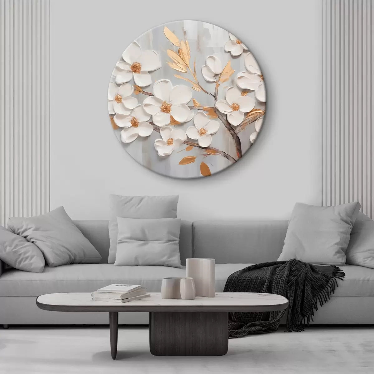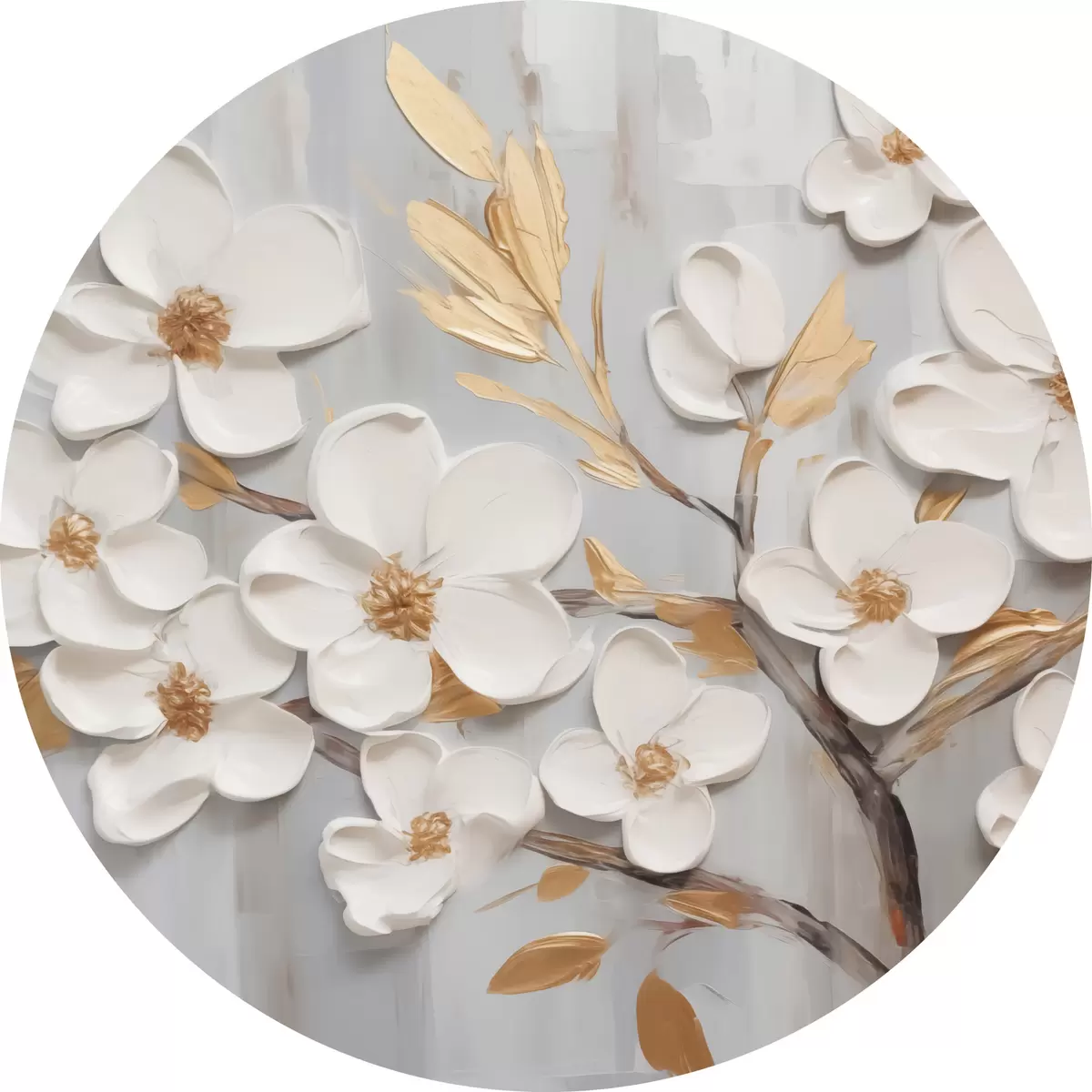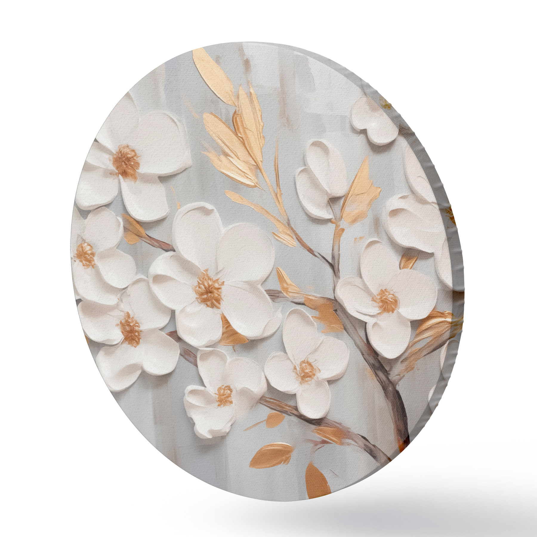 Cuadros redondos Pintura imitación flores blancas r44586