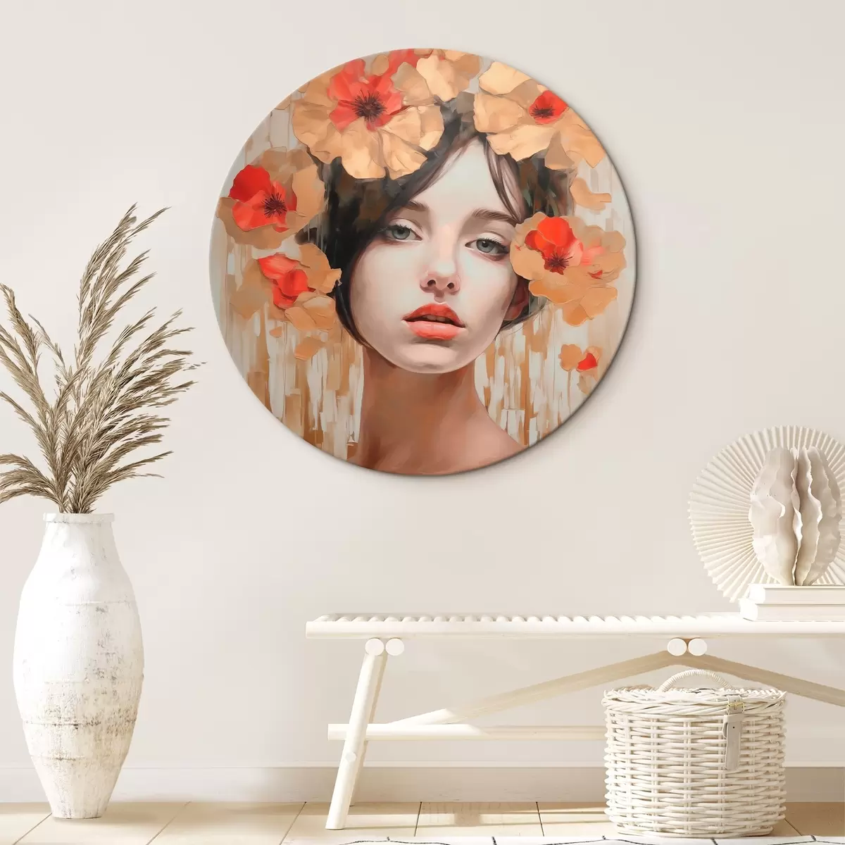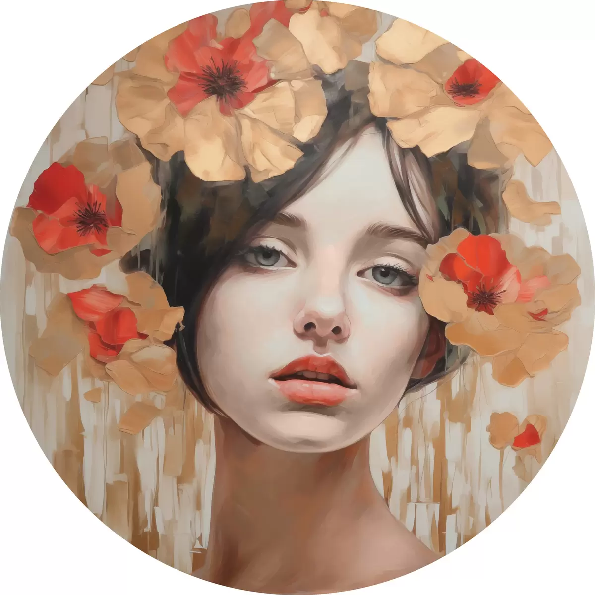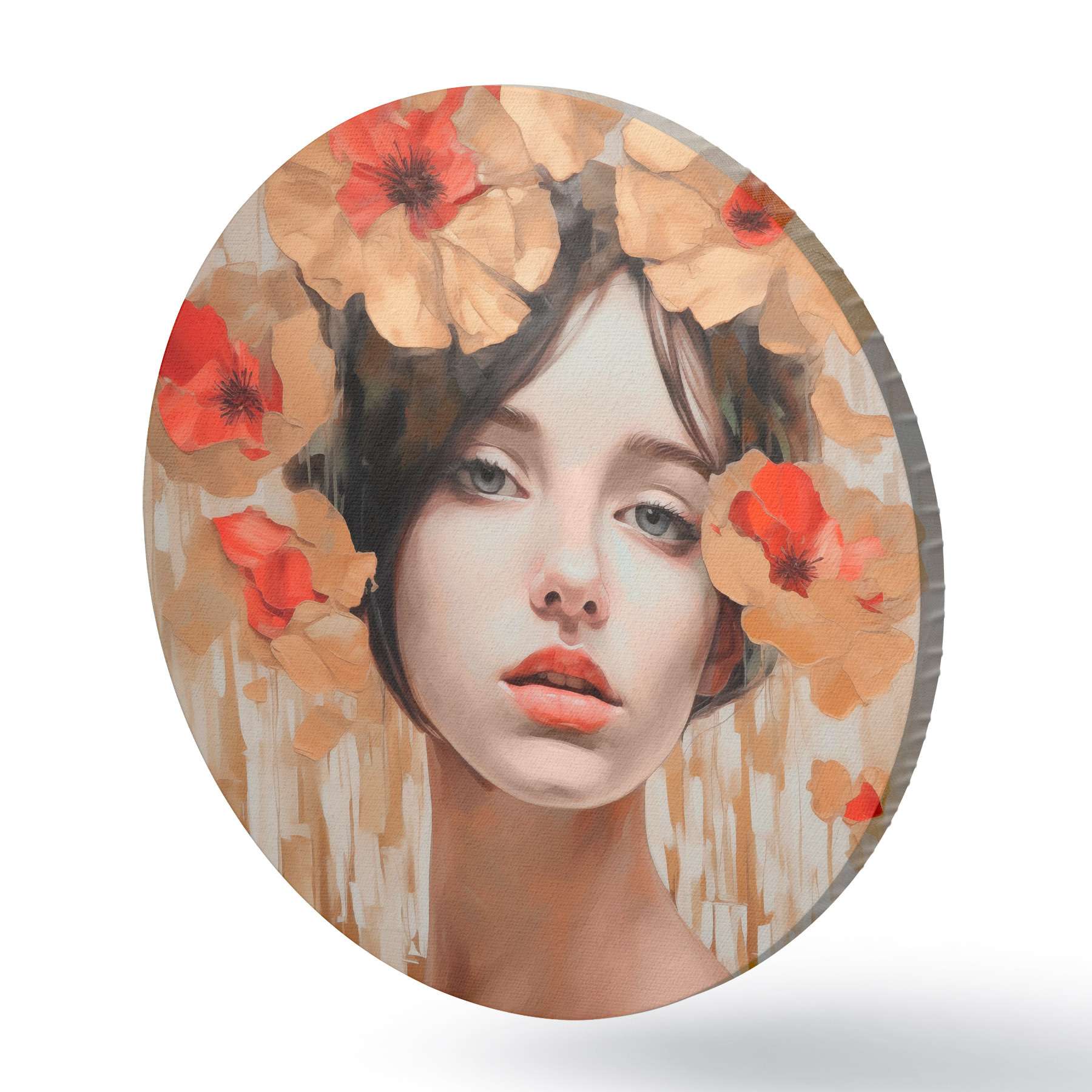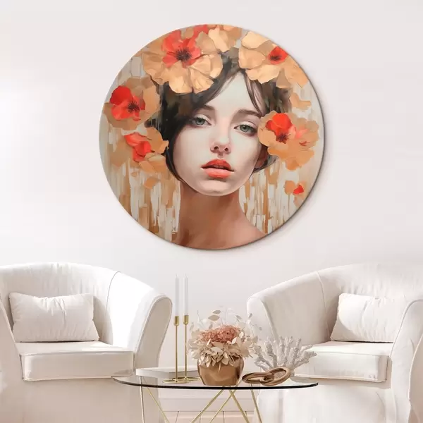 Cuadros redondos Retrato de niña con flores r44593