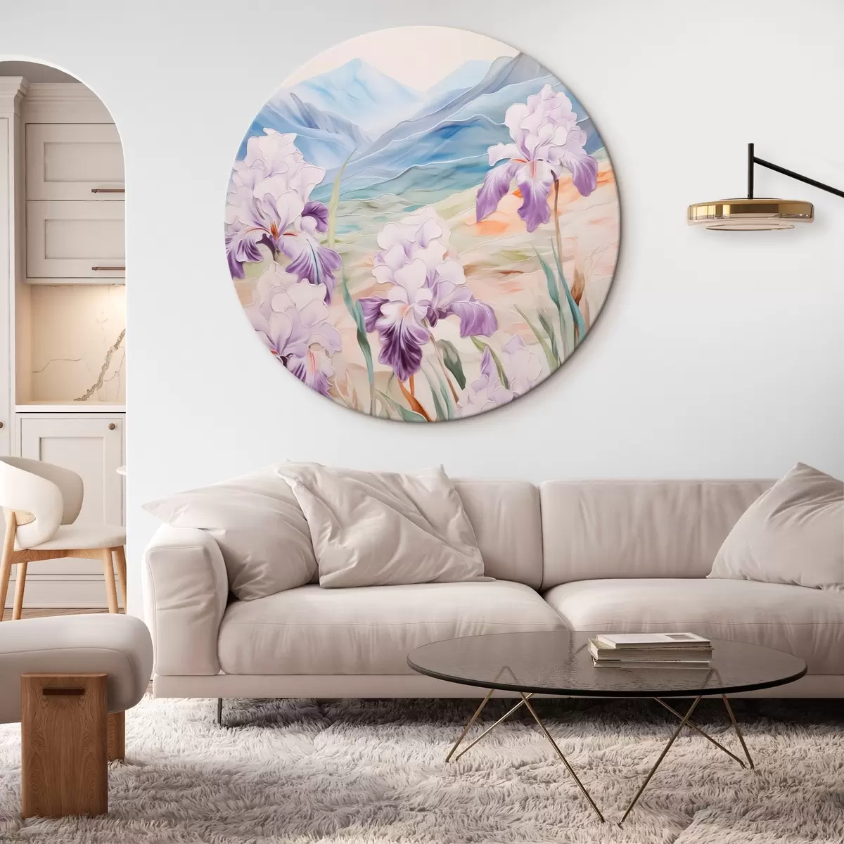 Cuadros redondos Iris con las montañas como telón de fondo r44599