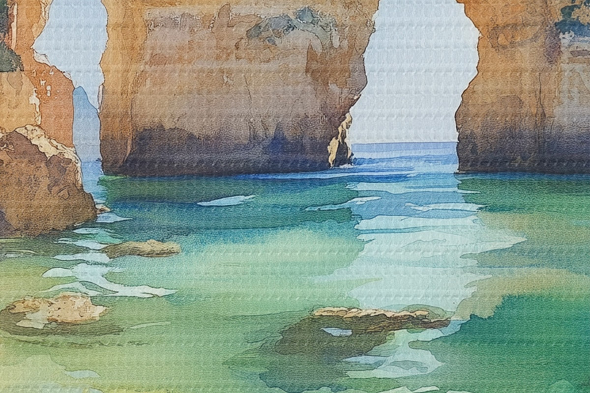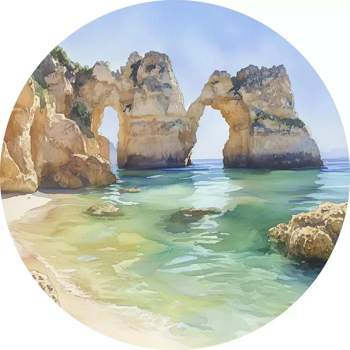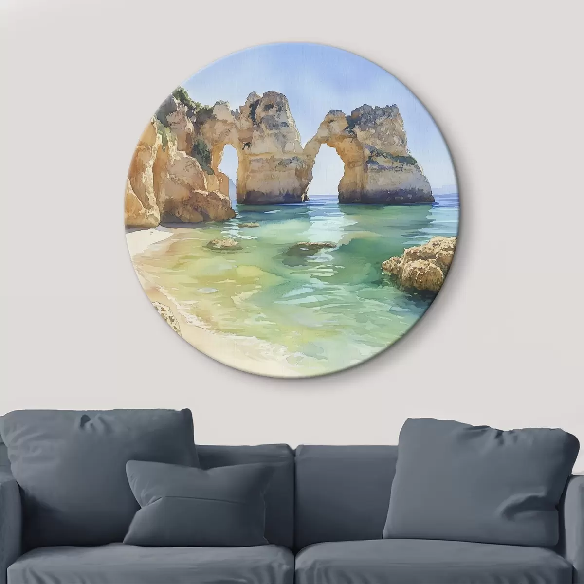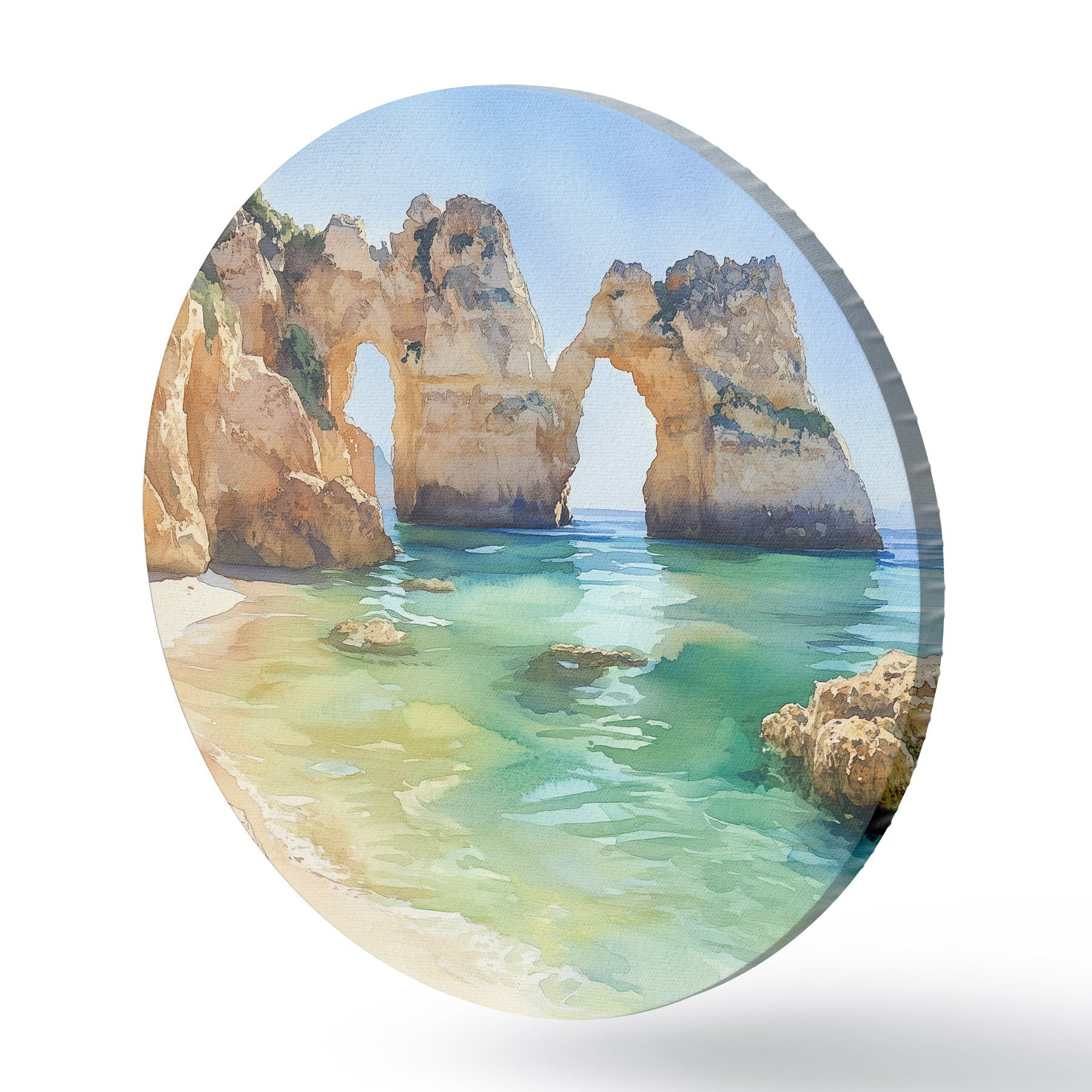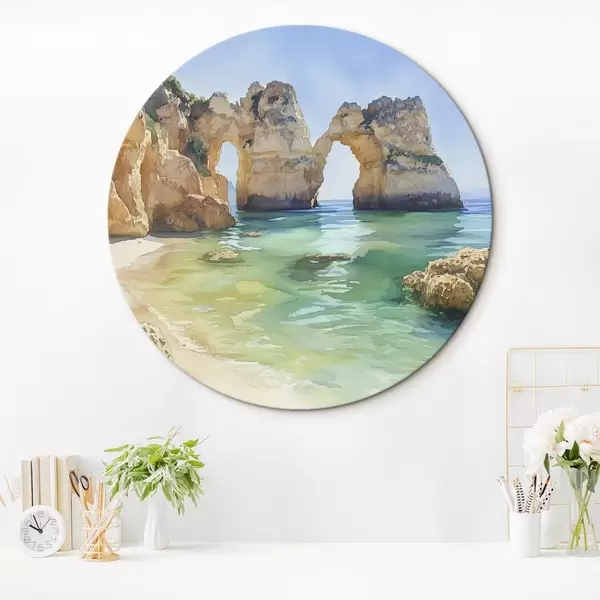Cuadros redondos Playa oceánica con acantilados rocosos, Portugal, verano, aguamarina r44608