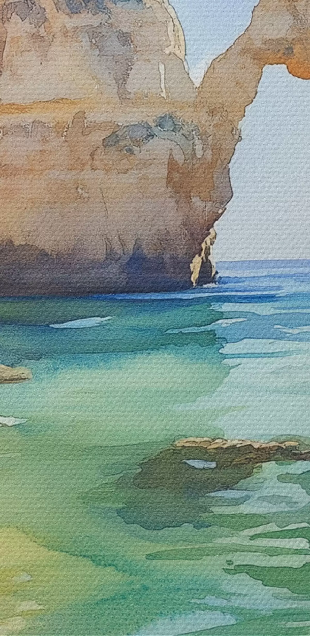 Foto Playa oceánica con acantilados rocosos, Portugal, verano, aguamarina Nr r44608