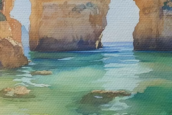 Foto Playa oceánica con acantilados rocosos, Portugal, verano, aguamarina Nr r44608