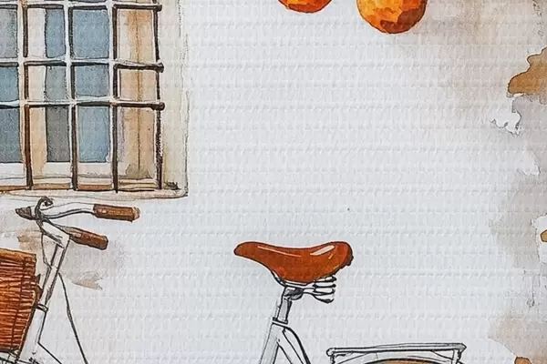 Foto Casa blanca mediterránea con naranjo y bicicleta Nr r44610